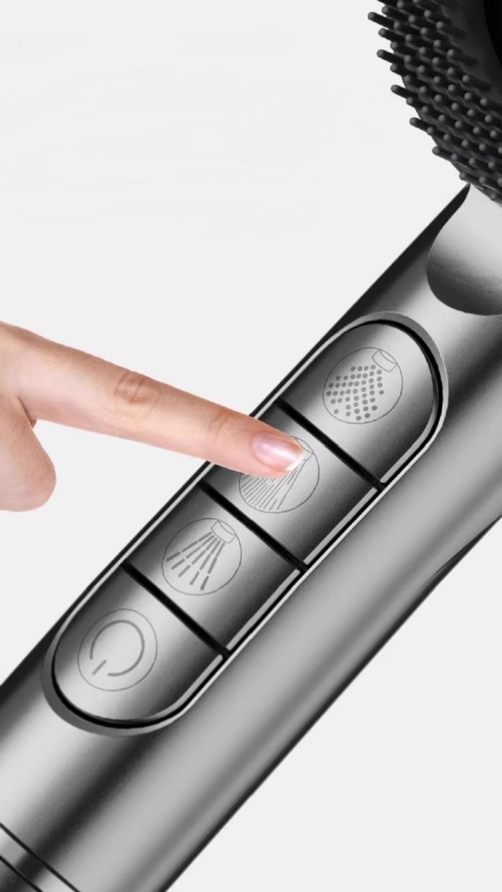 Featuring a handheld design with four practical spray settings: mist, mist + rain, rain, and spray mode. It meets various needs without complex setup, and is easy to use. Comes with a liquid soft silicone massage brush for in-shower massage SPA, soothing fatigue and promoting blood circulation.