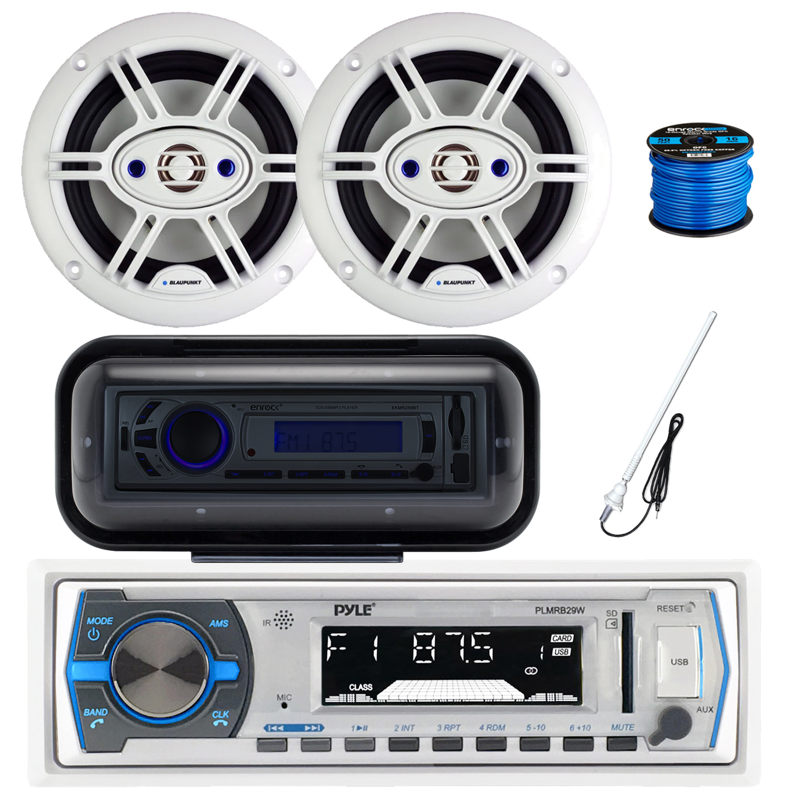 Pyle PLMRB29W BT Marine Receiver, Cover, 2x 6.5" Speakers w/Wire, Antenna