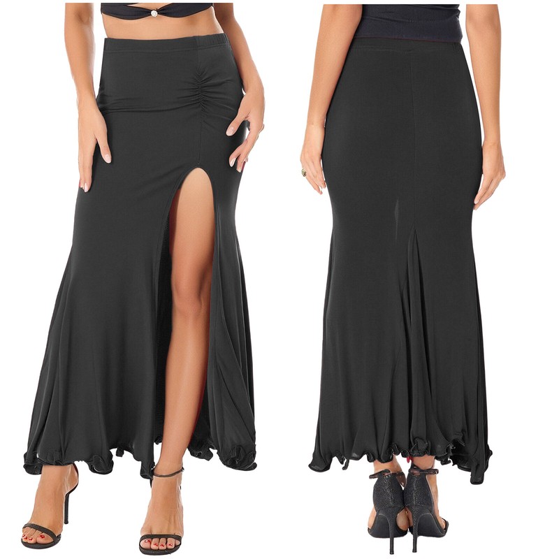 Made from a blend of polyester and spandex, this skirt offers flexibility and comfort, allowing for unrestricted movement during dance.
