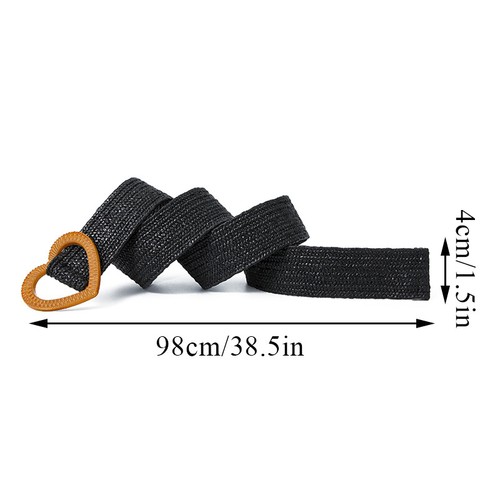 PP Grass Woven Waist Belt Solid Color Straw Belt Love Heart Buckle Adjustable