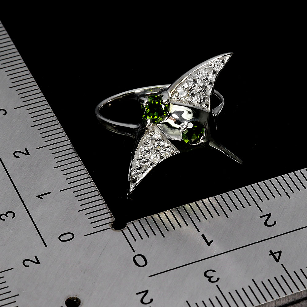 925 Sterling Silver Ring Round Chrome Diopside White Topaz Gemstone Jewelry Sz 8
