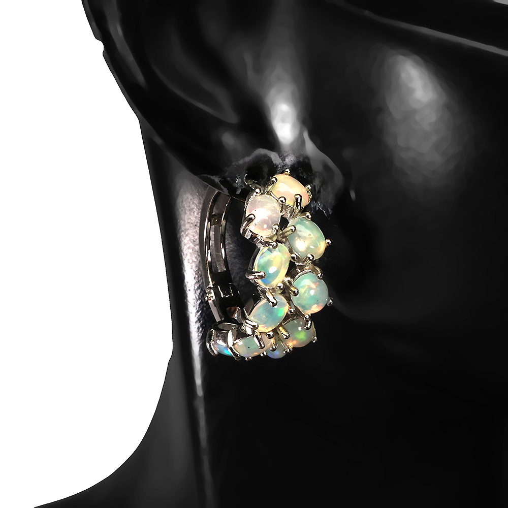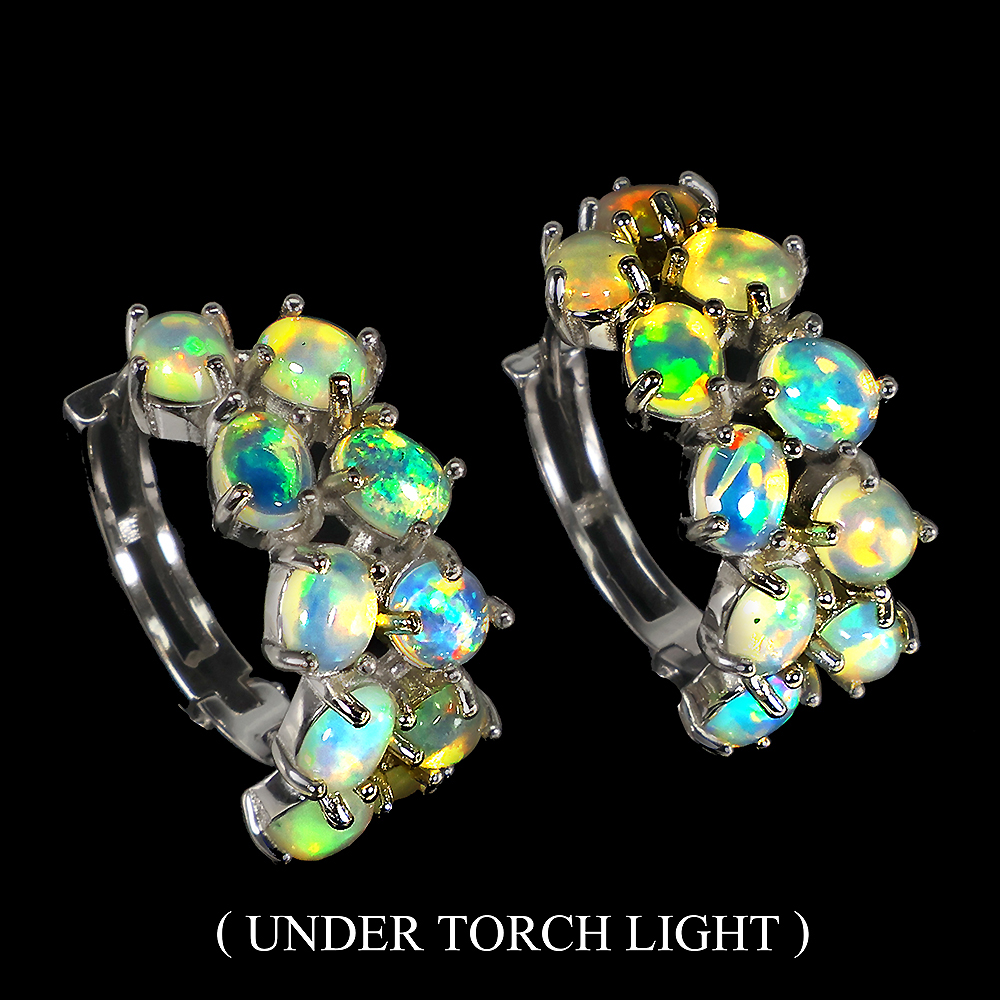 Unheated Oval Fire Opal Hot Rainbow Luster 5x4mm 925 Sterling Silver Earrings