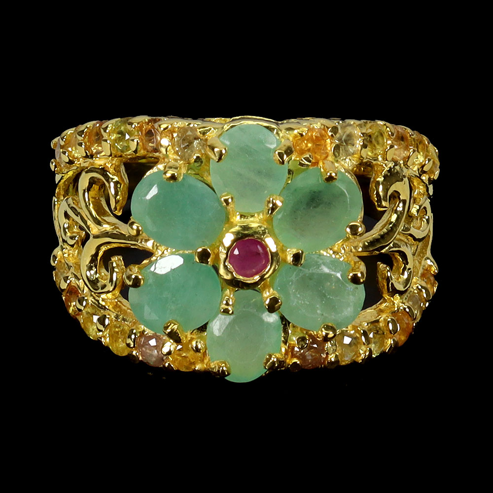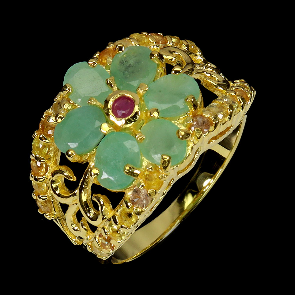 925 Sterling Silver Ring Oval Emerald Ruby Sapphire Gemstone No USA Import Fees