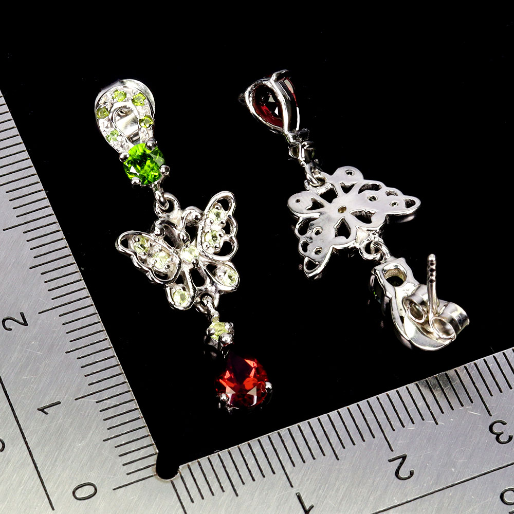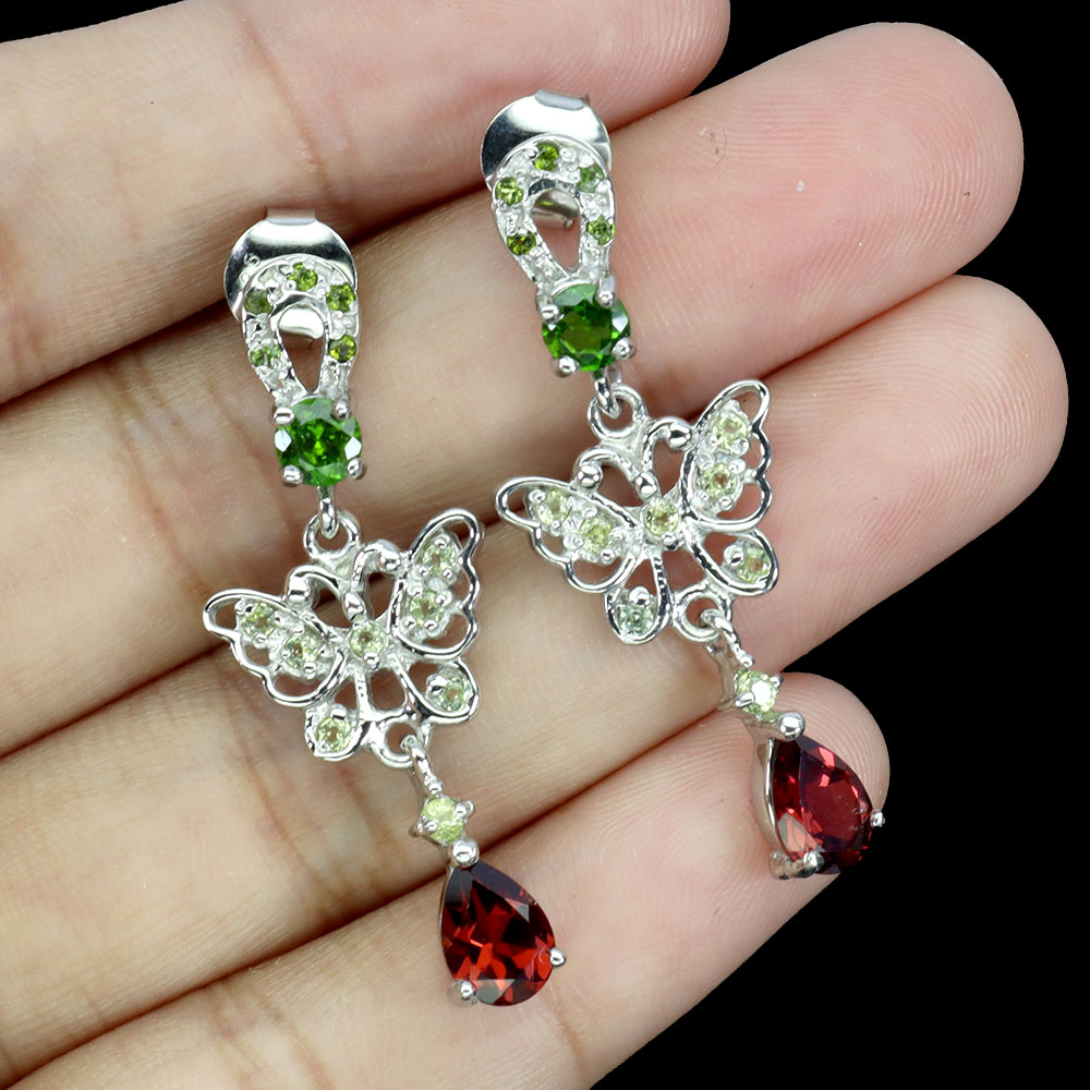925 Sterling Silver Earrings Pear Rhodolite Peridot Gemstone No USA Import Fees