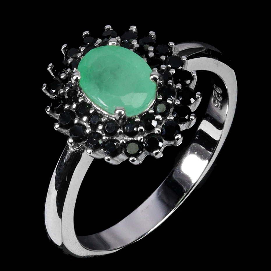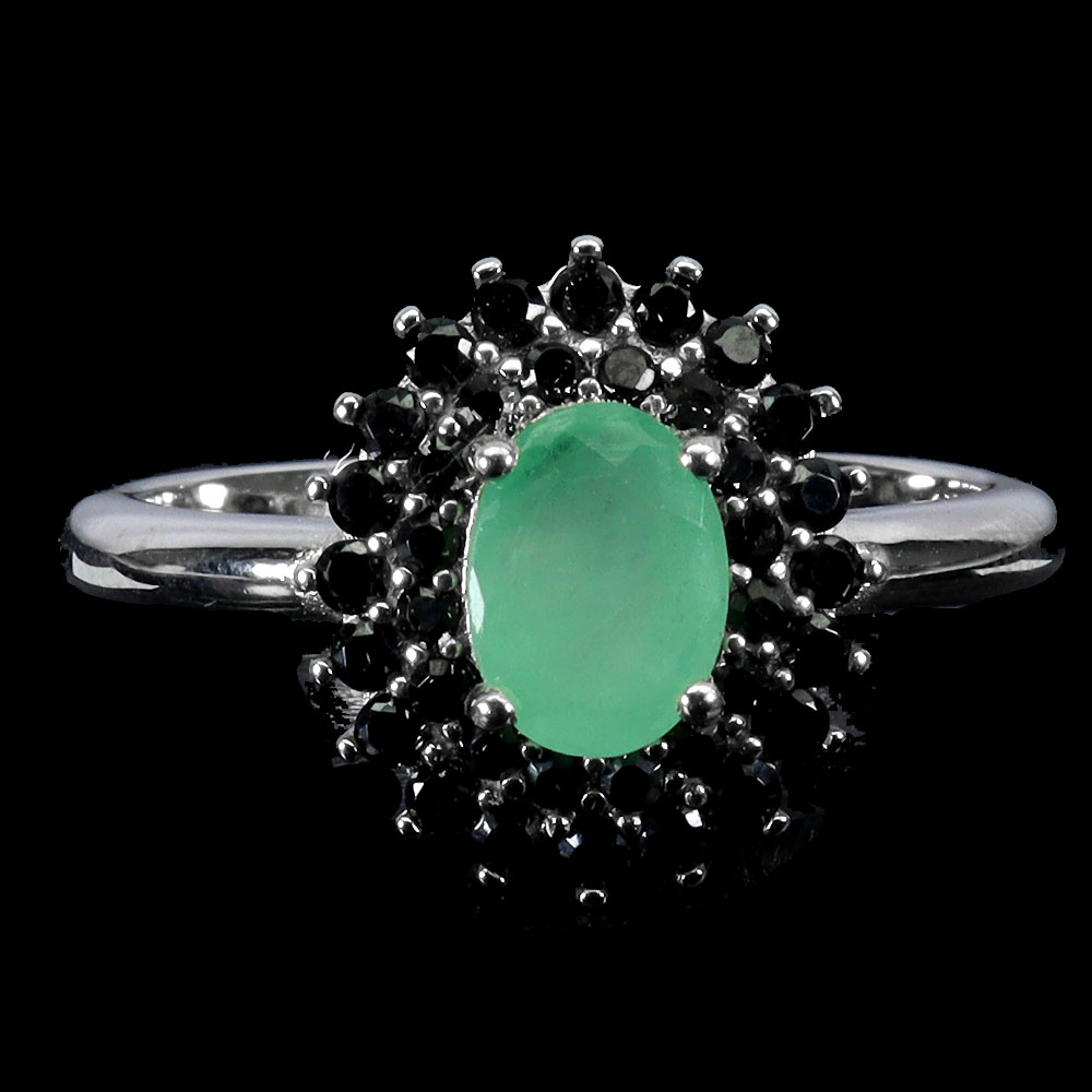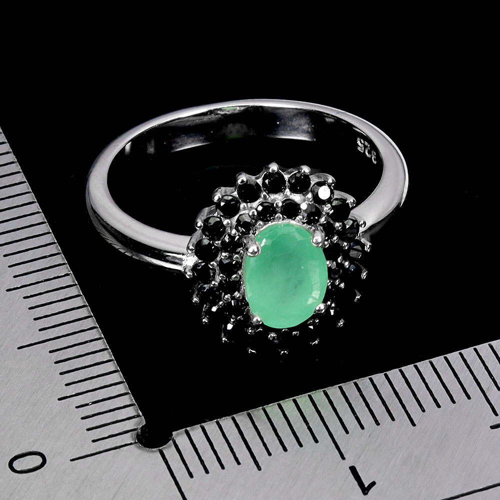 925 Sterling Silver Ring Oval Emerald 7x5mm Spinel Gemstone No USA Import Fees