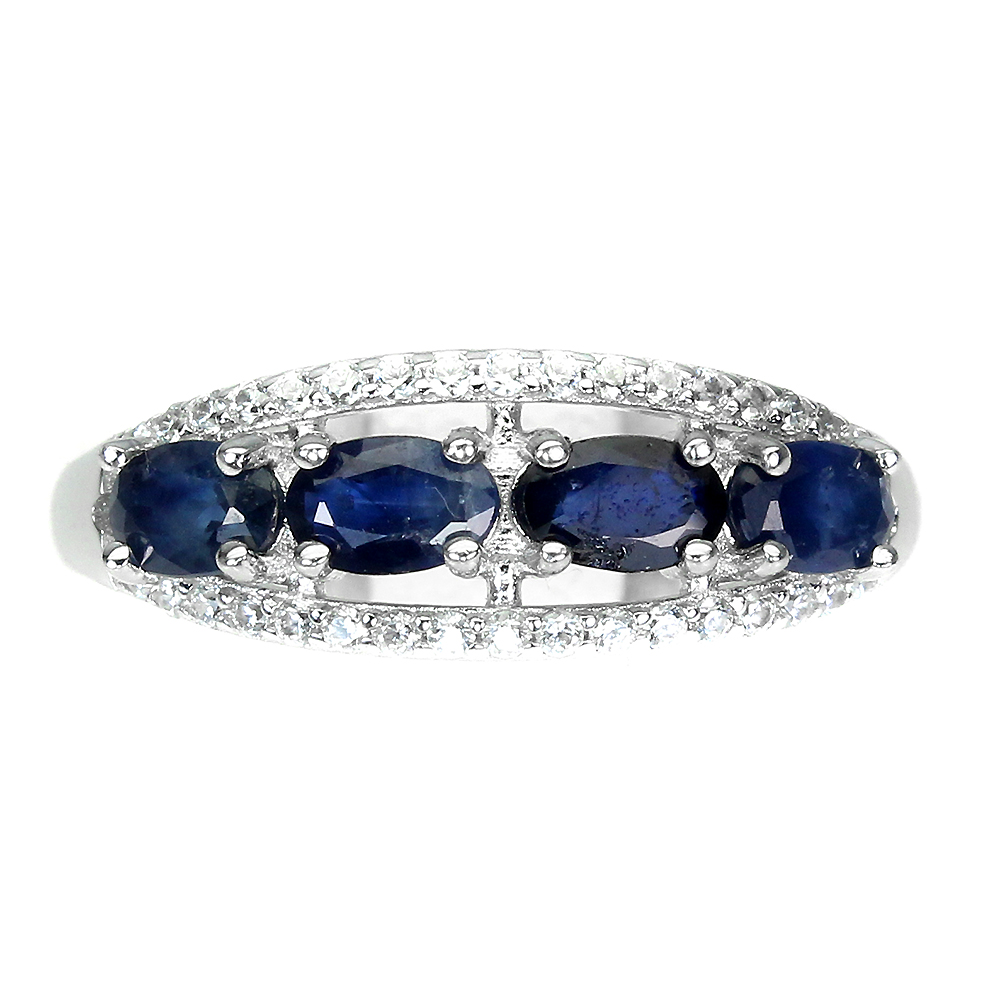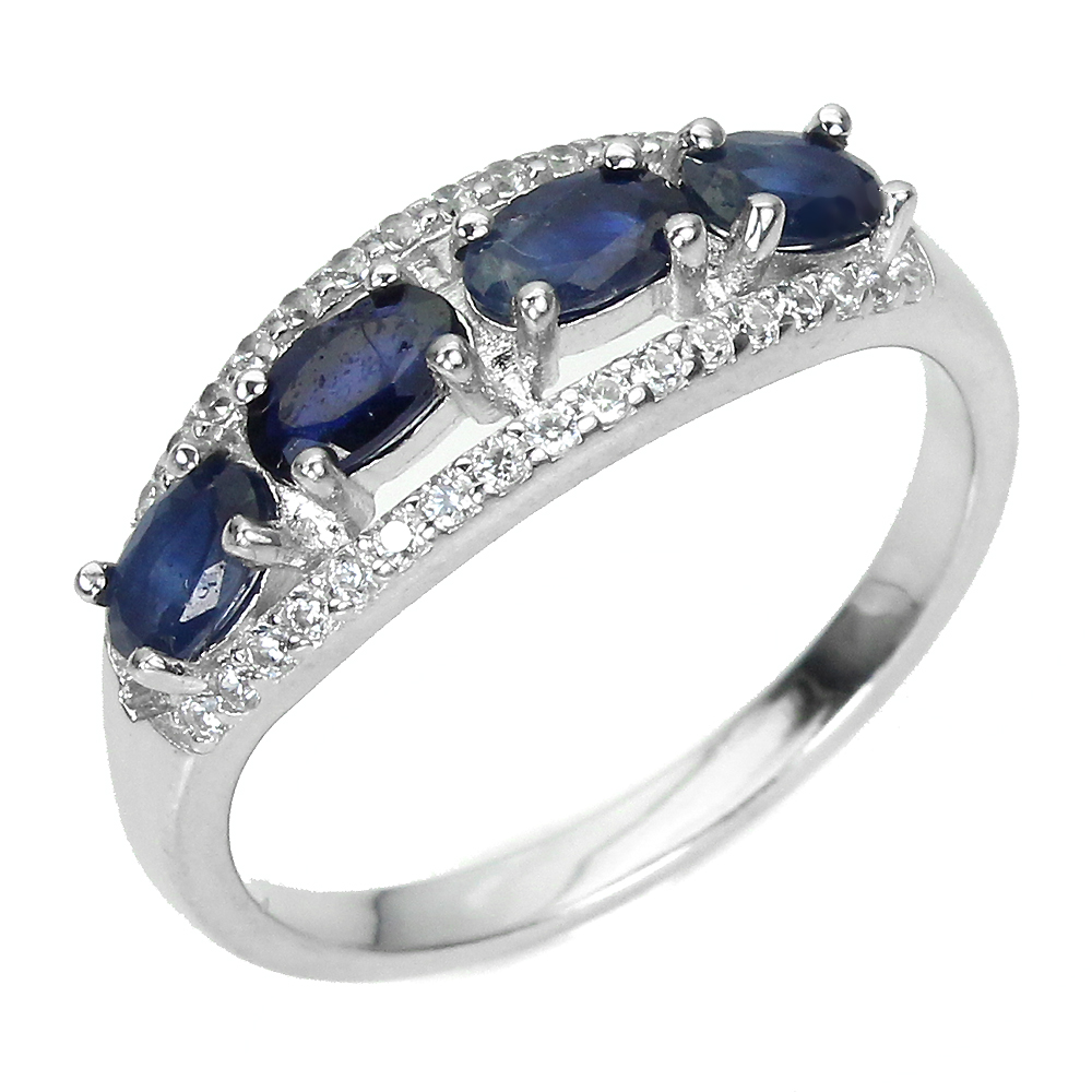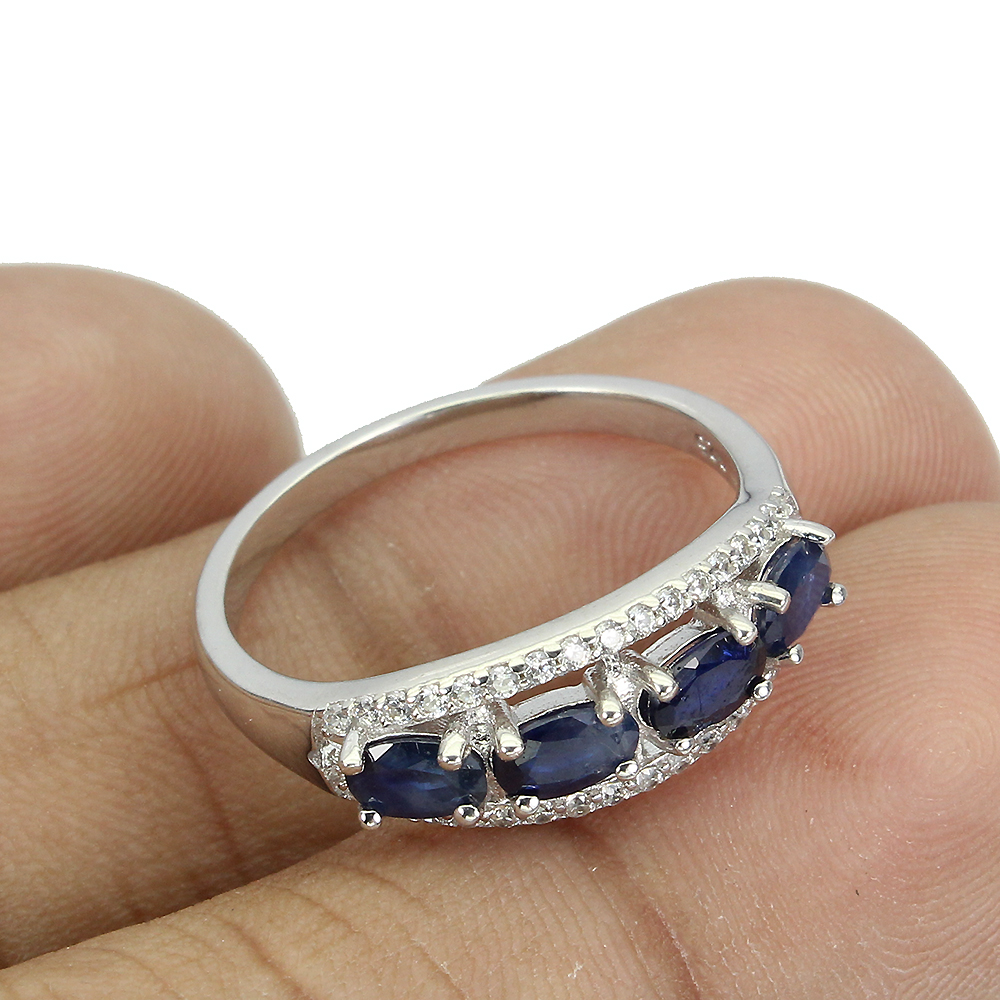 Heated Oval Blue Sapphire Kanchanaburi 5x3mm White Cz 925 Sterling Silver Ring