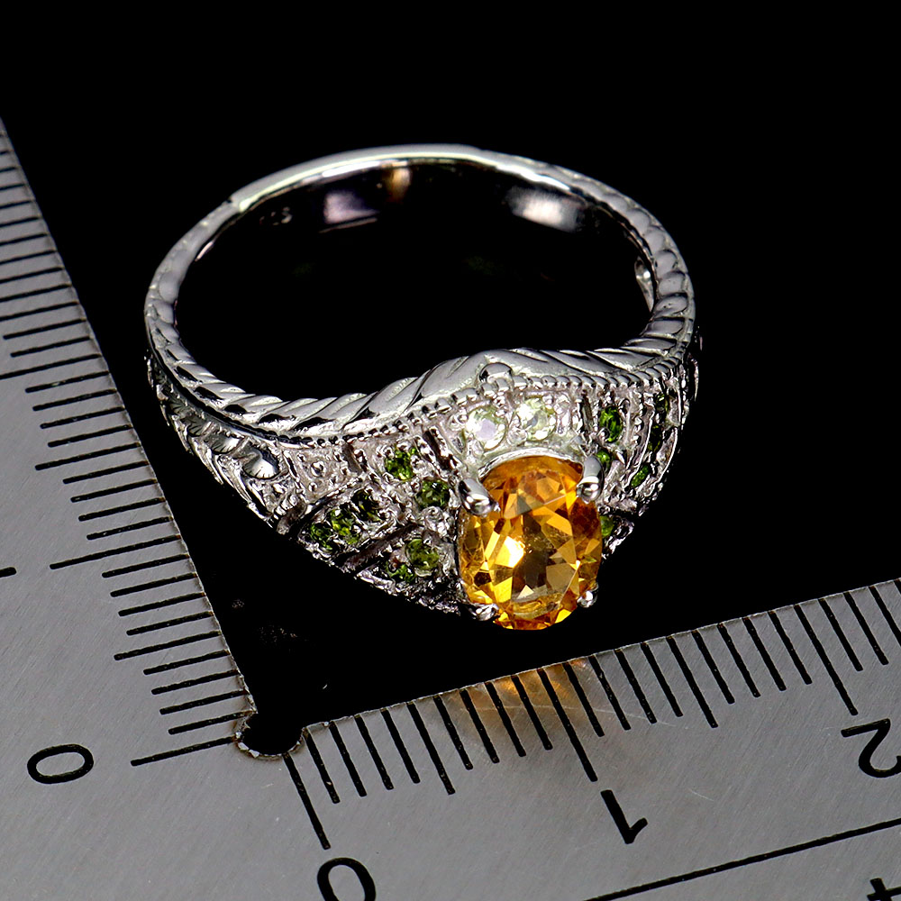 925 Sterling Silver Ring Oval Citrine Chrome Diopside Gemstone No USA Import Fees