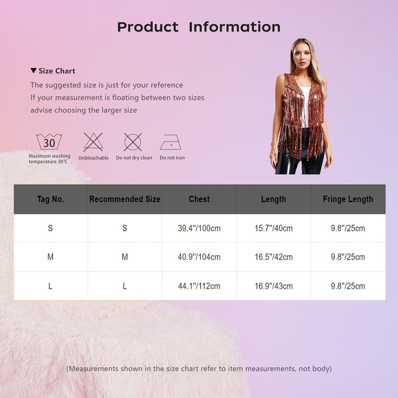 Coming with a 70s disco/western cowgirl style, the versatile vest is perfect to pair with camisole, tank top, jeans and leggings.