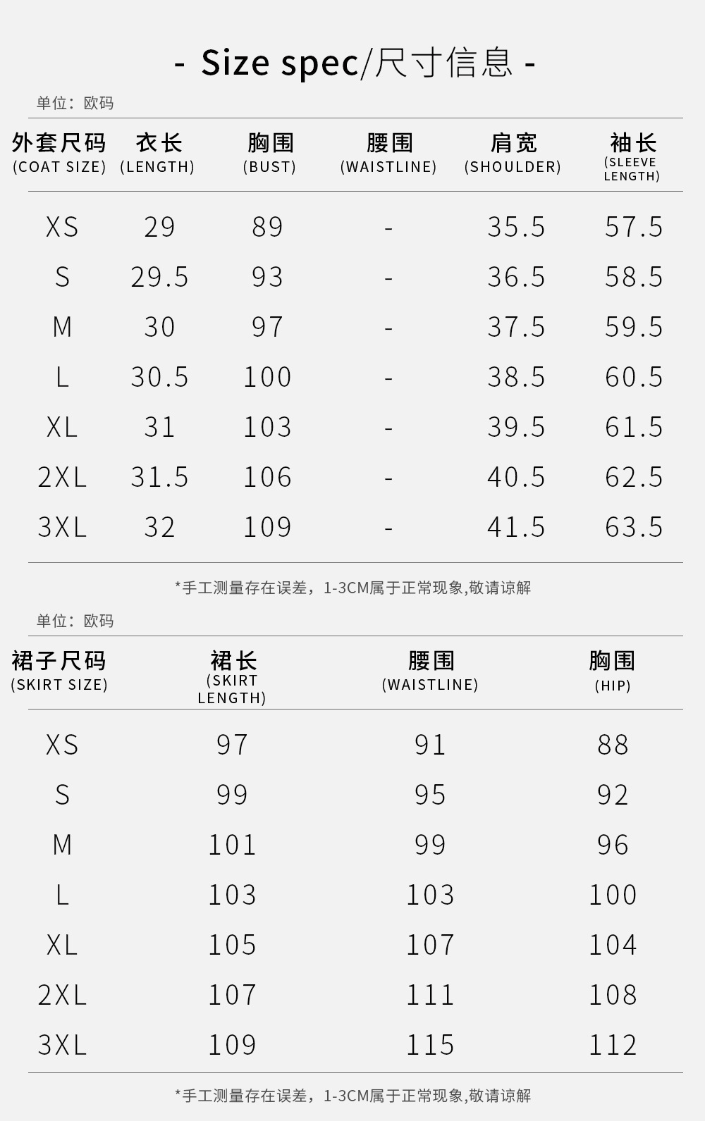 2. Please forgive a slight measuring deviation due to manual measurement.