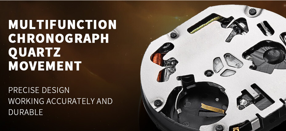 - With Chronograph (Stopwatch) and Luminous Function, with Date display;