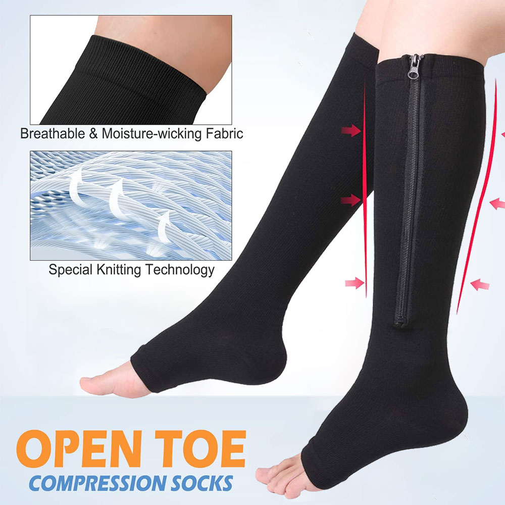 Zippered Medical Compression Socks 20-30mmHg Zipper Open Toe for Men Women