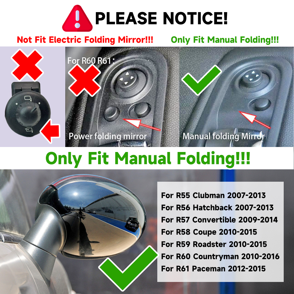 Für BMW Mini R55 R56 R57 R58 R59 R61 Ersatz-Rückspiegelkappe in Carbon Optik, links und rechts