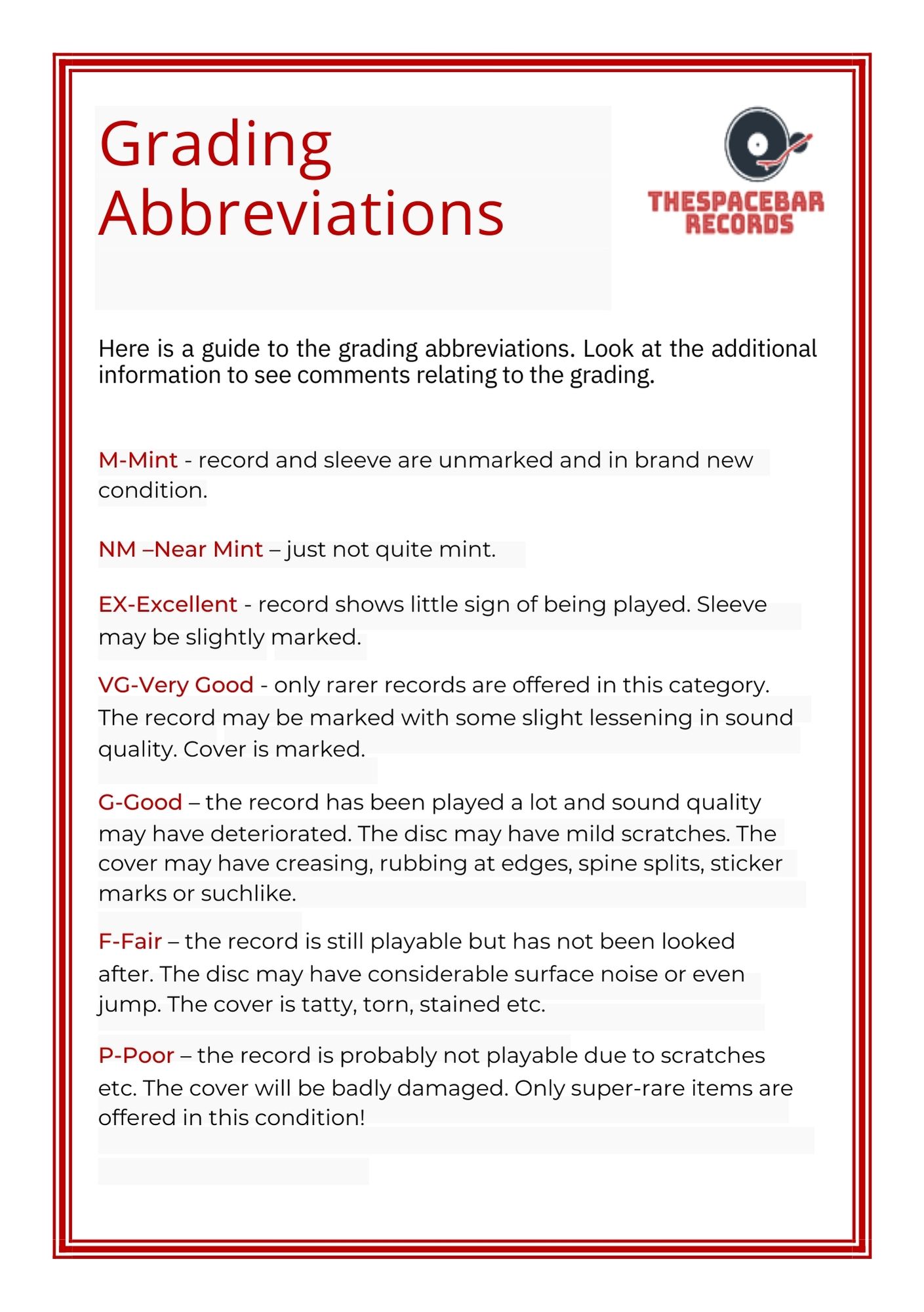 In the item titles we grade the vinyl 1st and the sleeve (if applicable) 2nd.