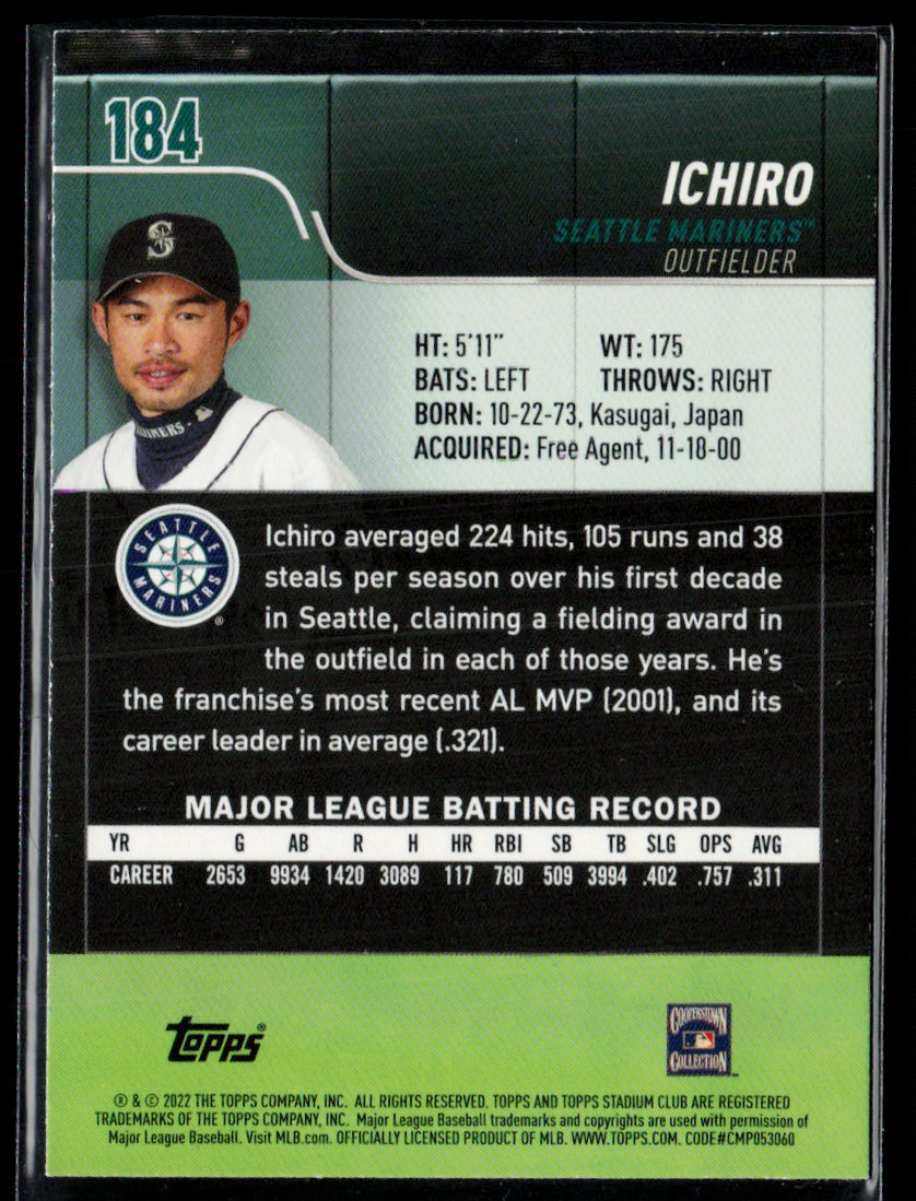 | 2022 Stadium Club #184 Ichiro Seattle Mariners |