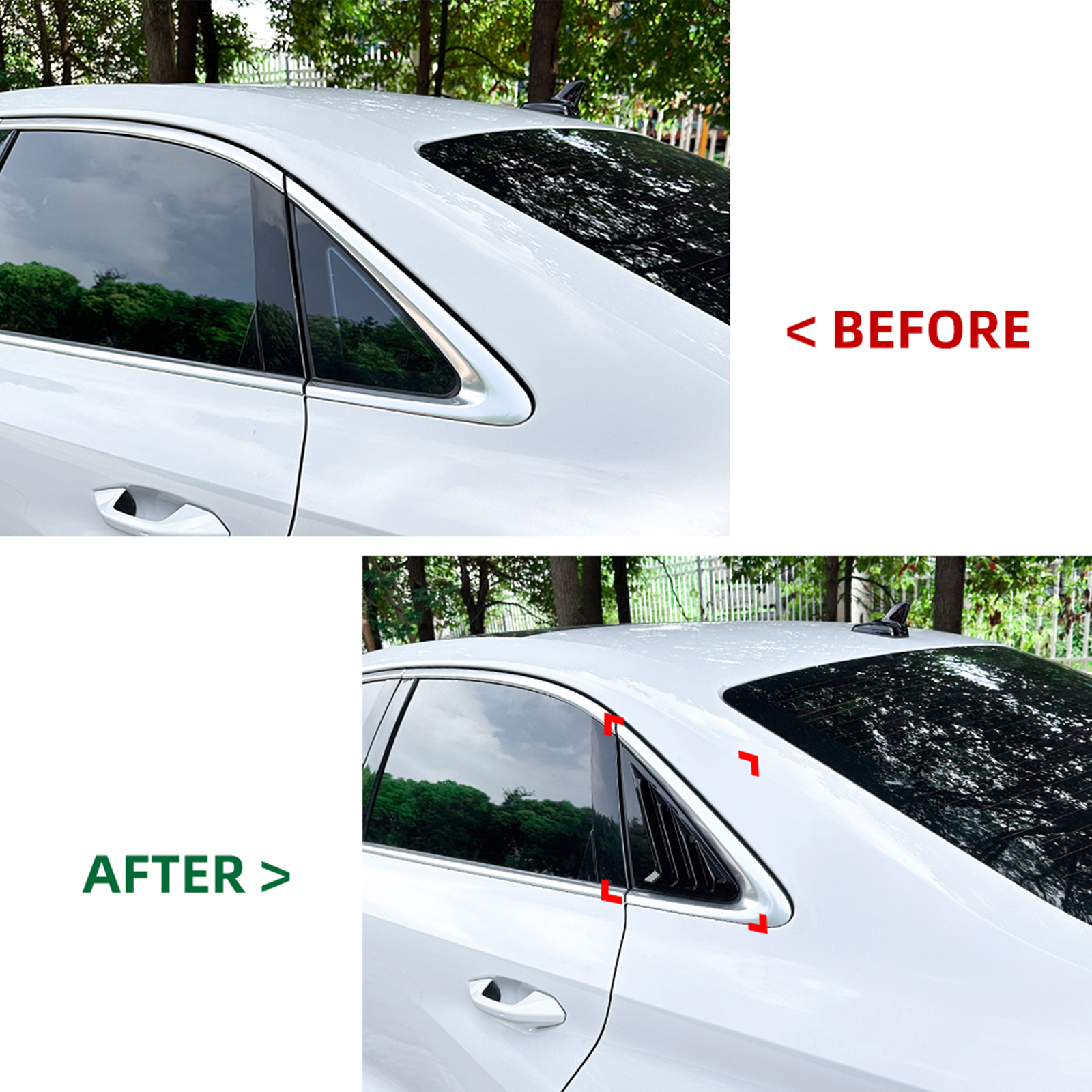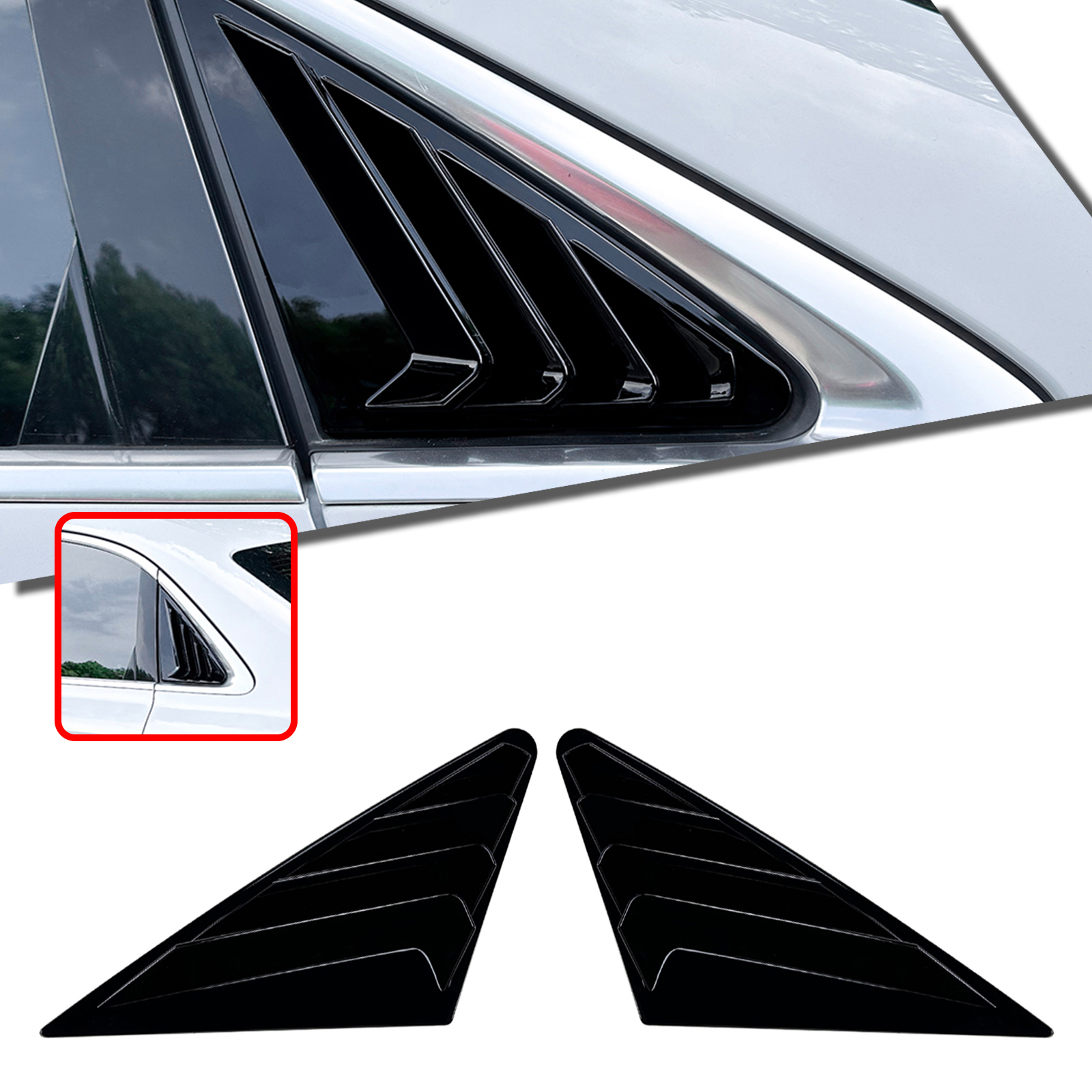 Package Including : 2PCS Rear Side Window Louver Shutter Trim Cover