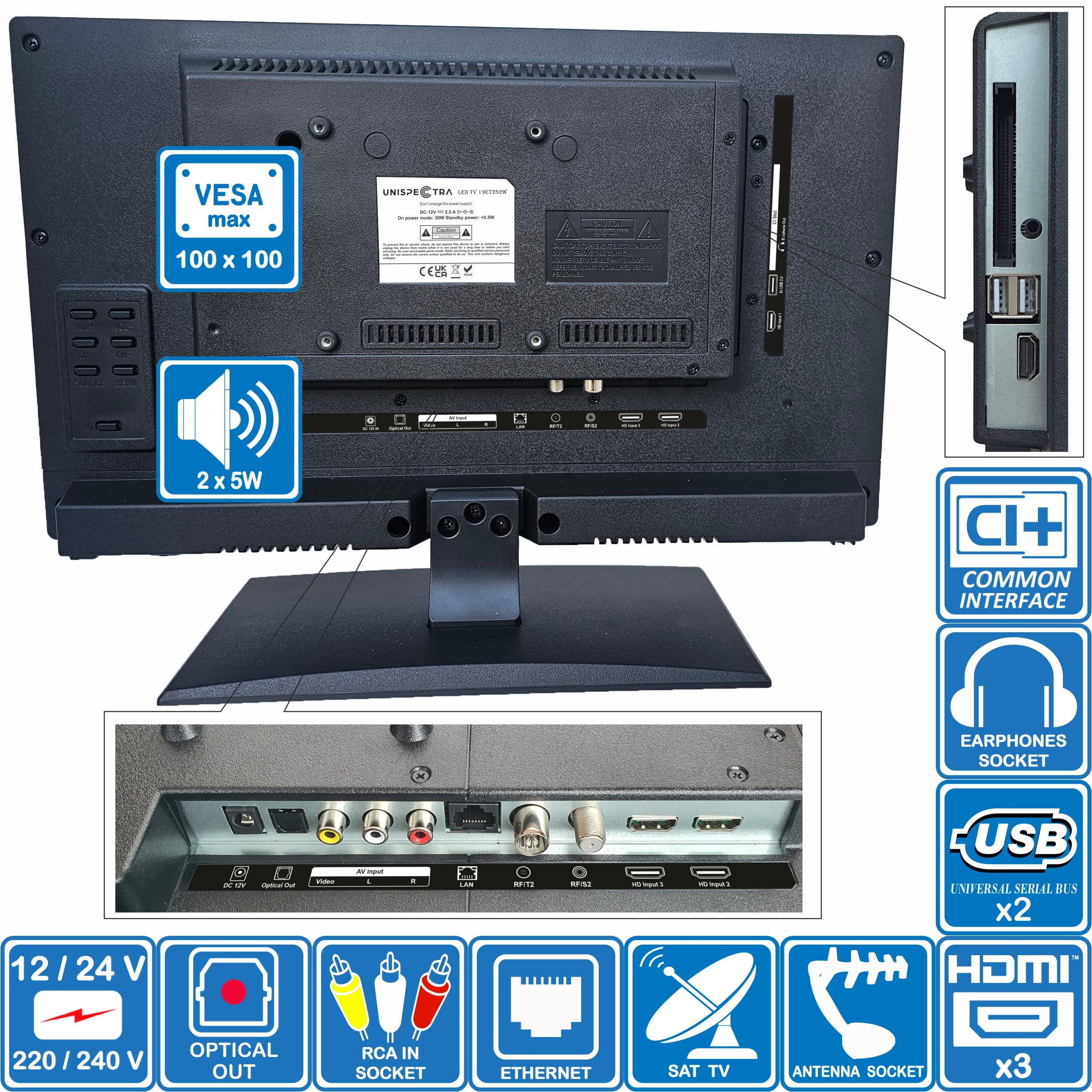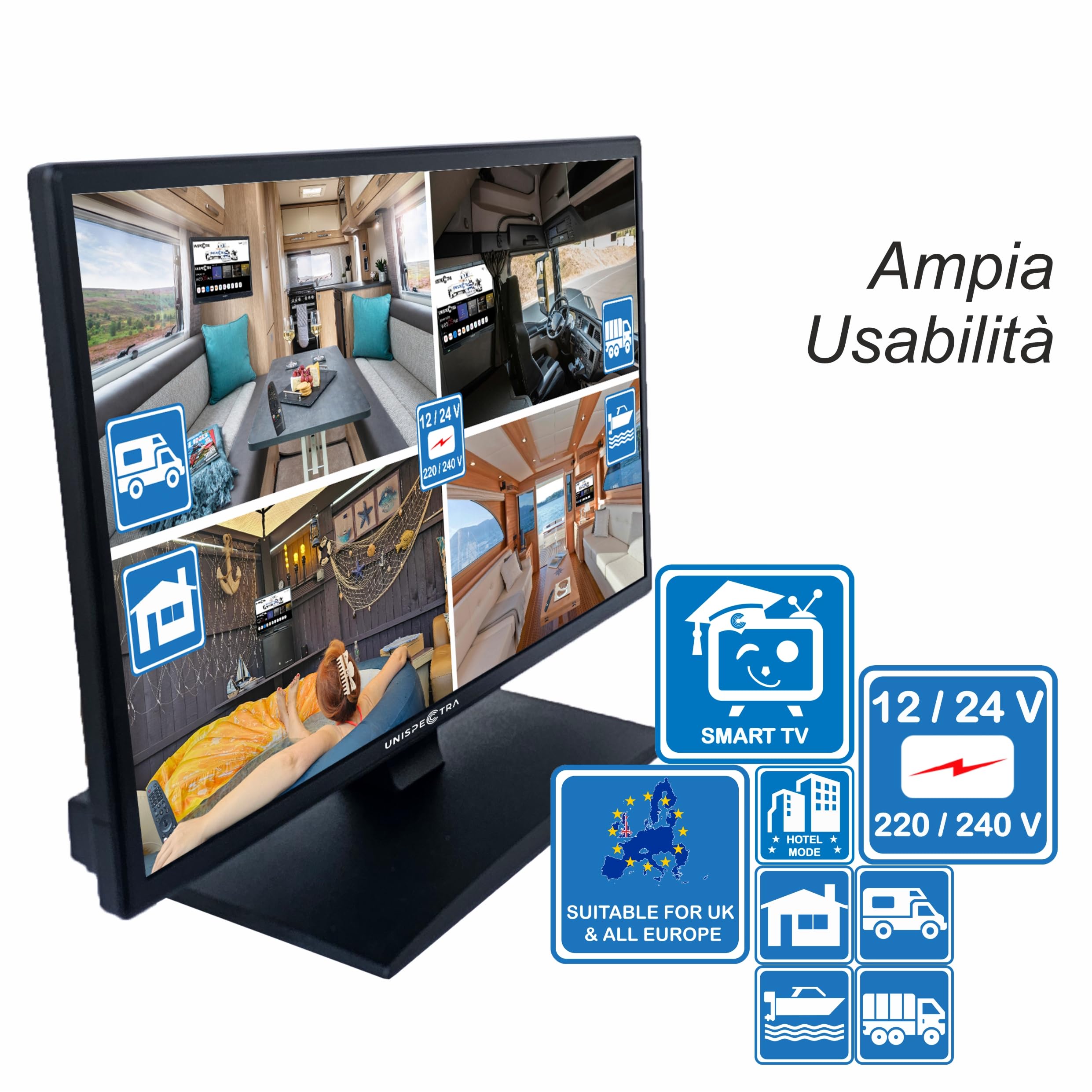 🌍 VERSATILE E PERFETTO PER QUALSIASI SPAZIO! Progettato per l’uso in tutta Europa e nel Regno Unito, questo TV è il tuo compagno di intrattenimento, ideale per la casa o in viaggio! Perfetto per camper, furgoni camperizzati, roulotte, camion, barche o qualsiasi spazio compatto. Grazie alle opzioni di alimentazione flessibili (12V, 24V DC o 240V AC) e ai due cavi di alimentazione inclusi, puoi goderti i tuoi contenuti preferiti sempre e ovunque!