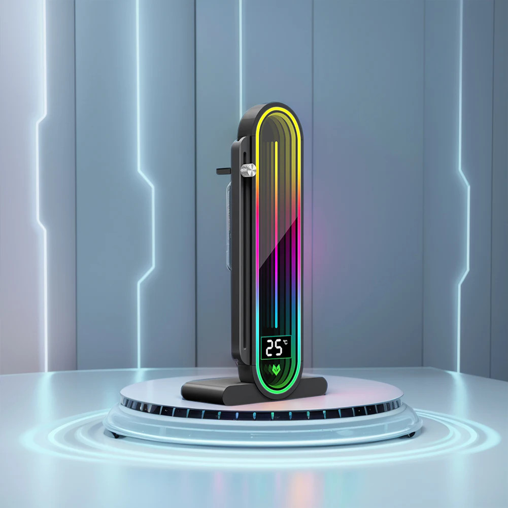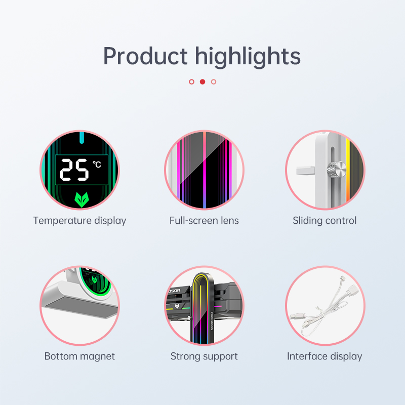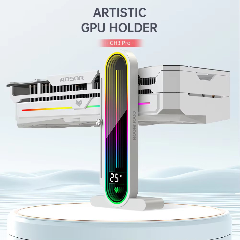 1. Temperature Display Screen: The graphics card bracket features an artistic design with an arc full-screen lens, supporting LED smart temperature display. The new generation of automatic temperature sensing technology displays the internal temperature of the case in real-time, allowing you to monitor the operating status easily. (Only G30 Pro series supports this feature.)