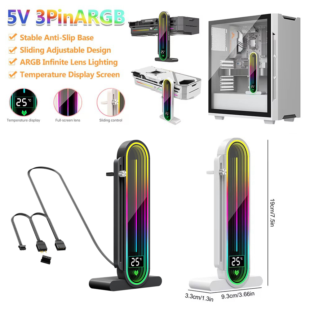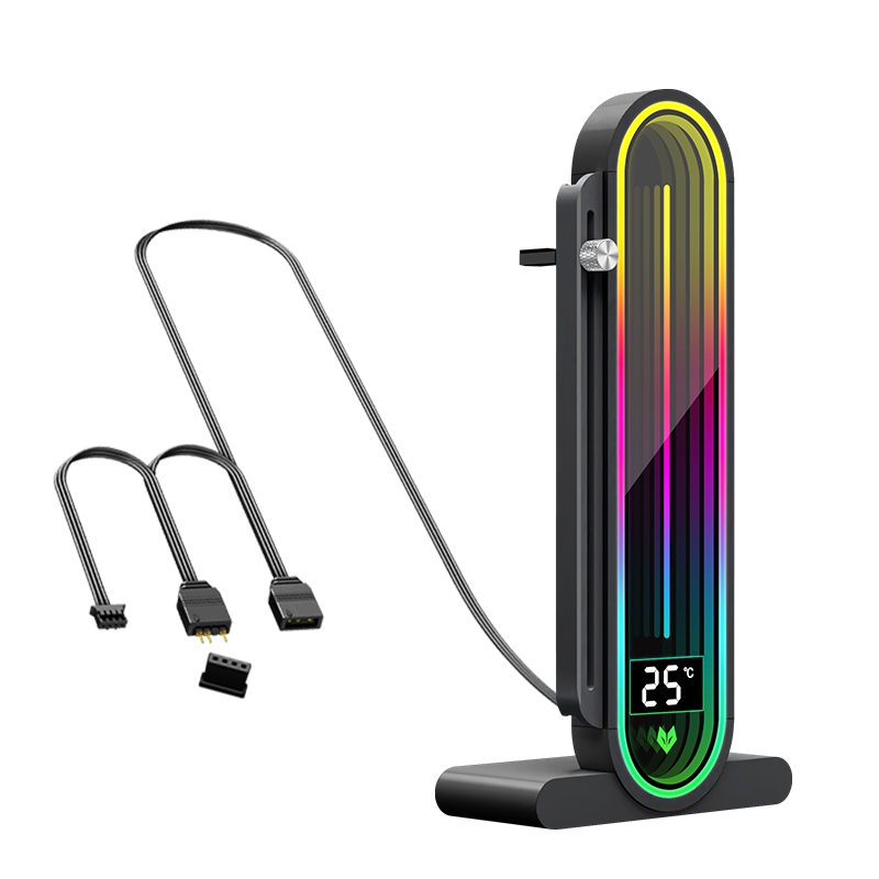 2. ARGB Infinite Lens Lighting: The vga holder is equipped with a 5V 3-pin ARGB male and female interface, supporting motherboard addressable (5V) ARGB sync interface for software-controlled lighting. It can be programmed to define 16.8 million dazzling lighting effects. The overall arc full-screen lens, with 16 high-brightness LED beads, provides soft and full lighting. The infinite lens offers an infinite geometric state, bringing you stunning ARGB lighting effects.
