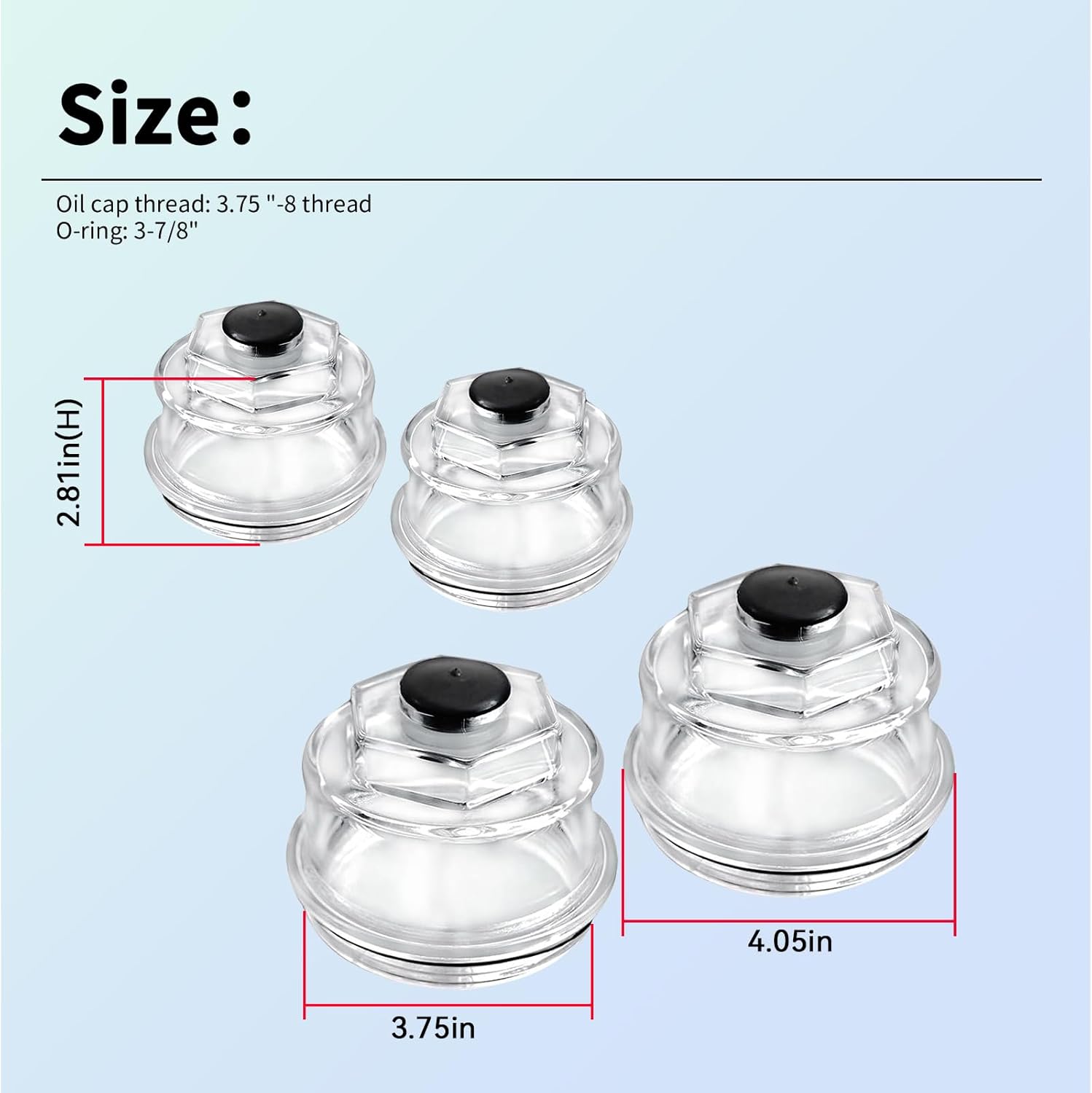 Our oil bath dust cap oil cap specification is 3.75 "-8 thread.