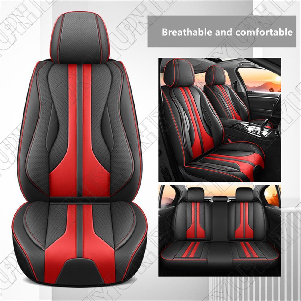 Crafted with perforated leather, it offers superior comfort and excellent breathability. The combination of black and red stripes adds a touch of stylish elegance. Enjoy a luxurious driving experience with this remarkable car seat covers that combines functionality and fashion. It is the perfect choice to enhance the interior of your vehicle and provide a comfortable seating environment.