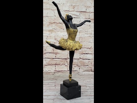 Admire the graceful beauty of the Signed Original Milo Gold Patina Ballerina Bronze Sculpture. This exquisite sculpture captures the essence of a ballerina in a captivating dance pose, showcasing the fluidity and elegance of ballet. Created by the talented artist Milo, this sculpture is a true masterpiece, meticulously crafted with the lost wax method to preserve every delicate detail of the ballerina's form.