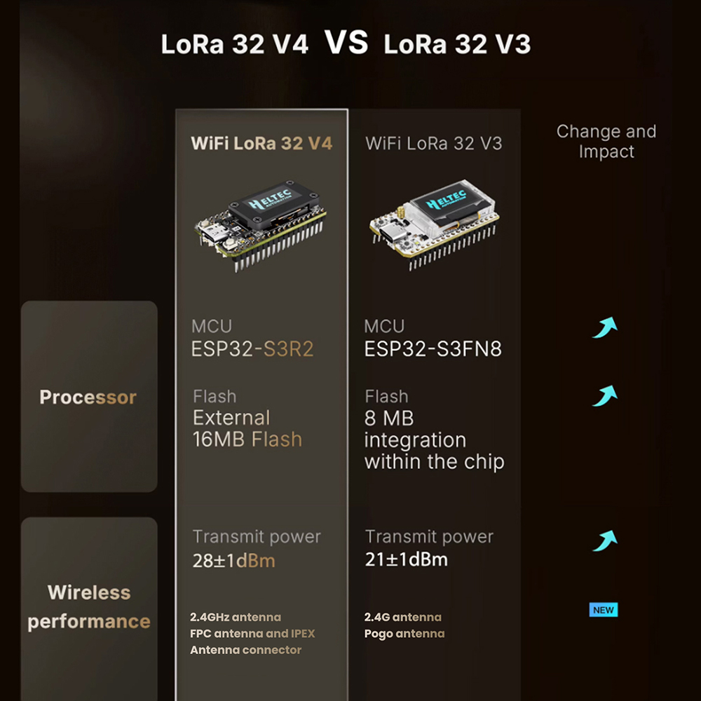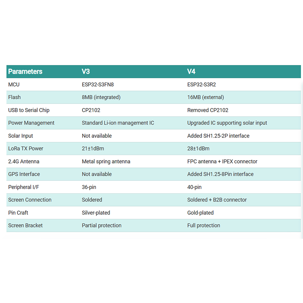 - Form factor and pinout compatible with WiFi LoRa 32 V3.