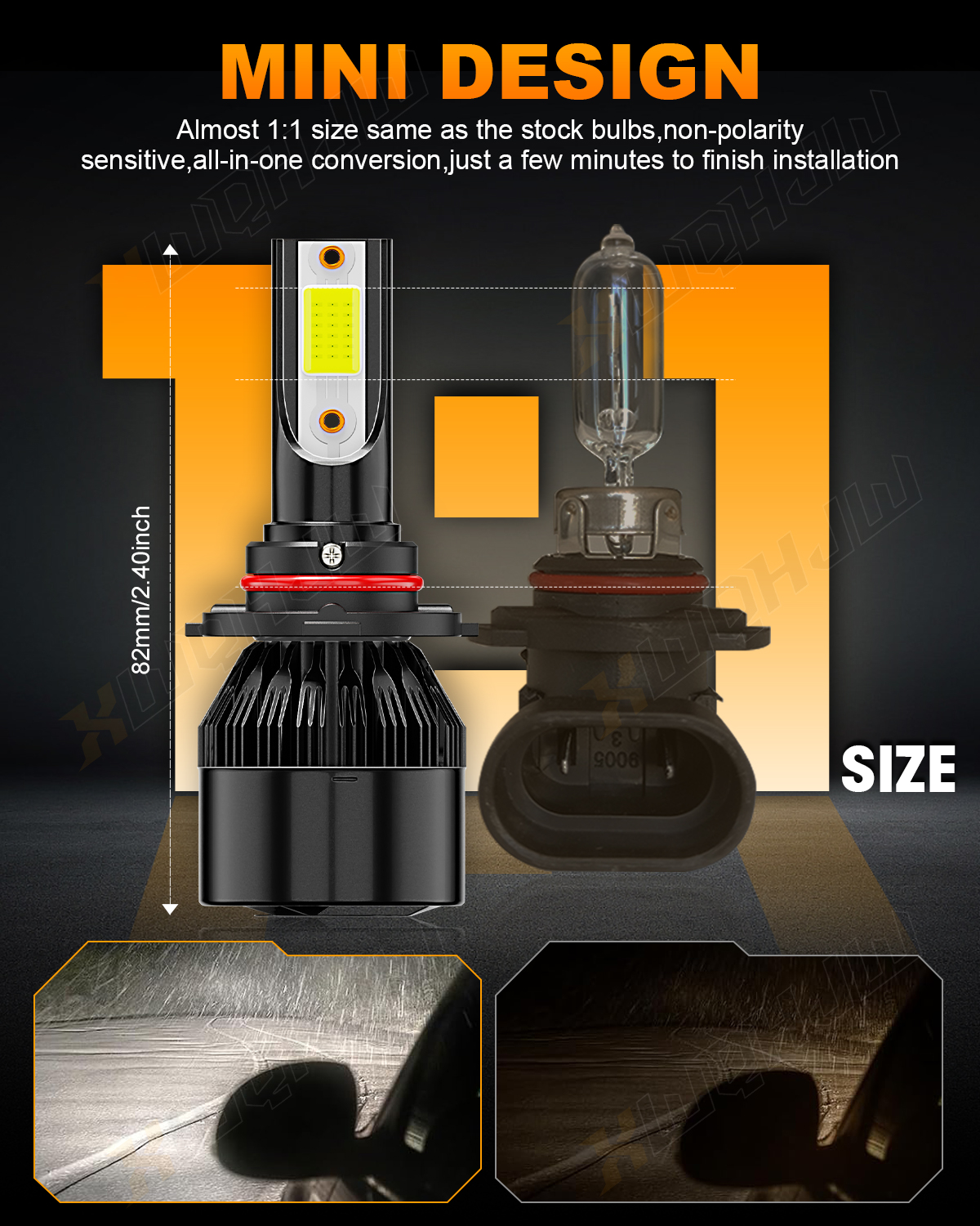 Built-in driver and non-polarity plug, 1:1 same filament position as stock halogen. LED light small size design for higher compatibility in factory housing. No modification required,easy installation in 10 mins. Just Plug & play!