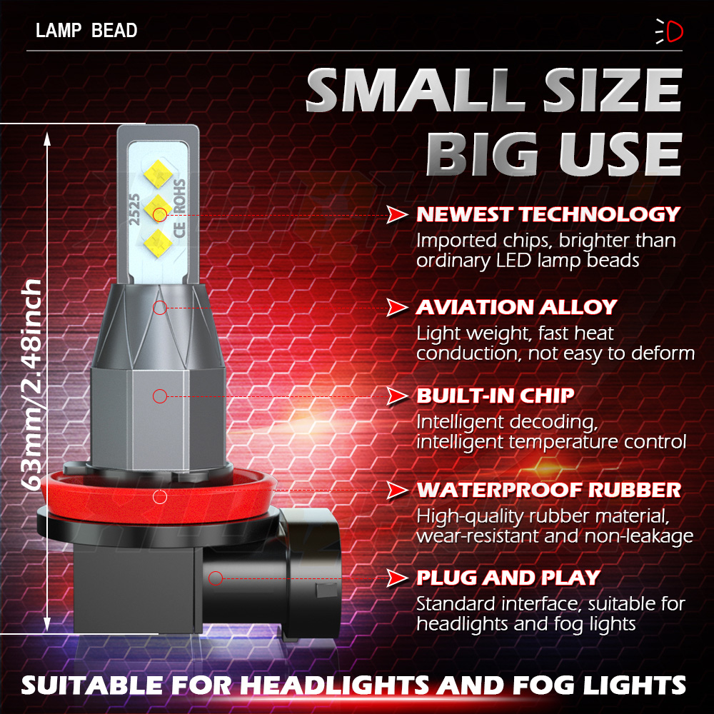 CANbus ready and fits 99% vehicles without issue. Integrated with COB chip, no radio interference. IP67 waterproof feature makes it work perfectly on any extreme weather, like rainy day, snowy day, foggy day, hazy weather,etc.