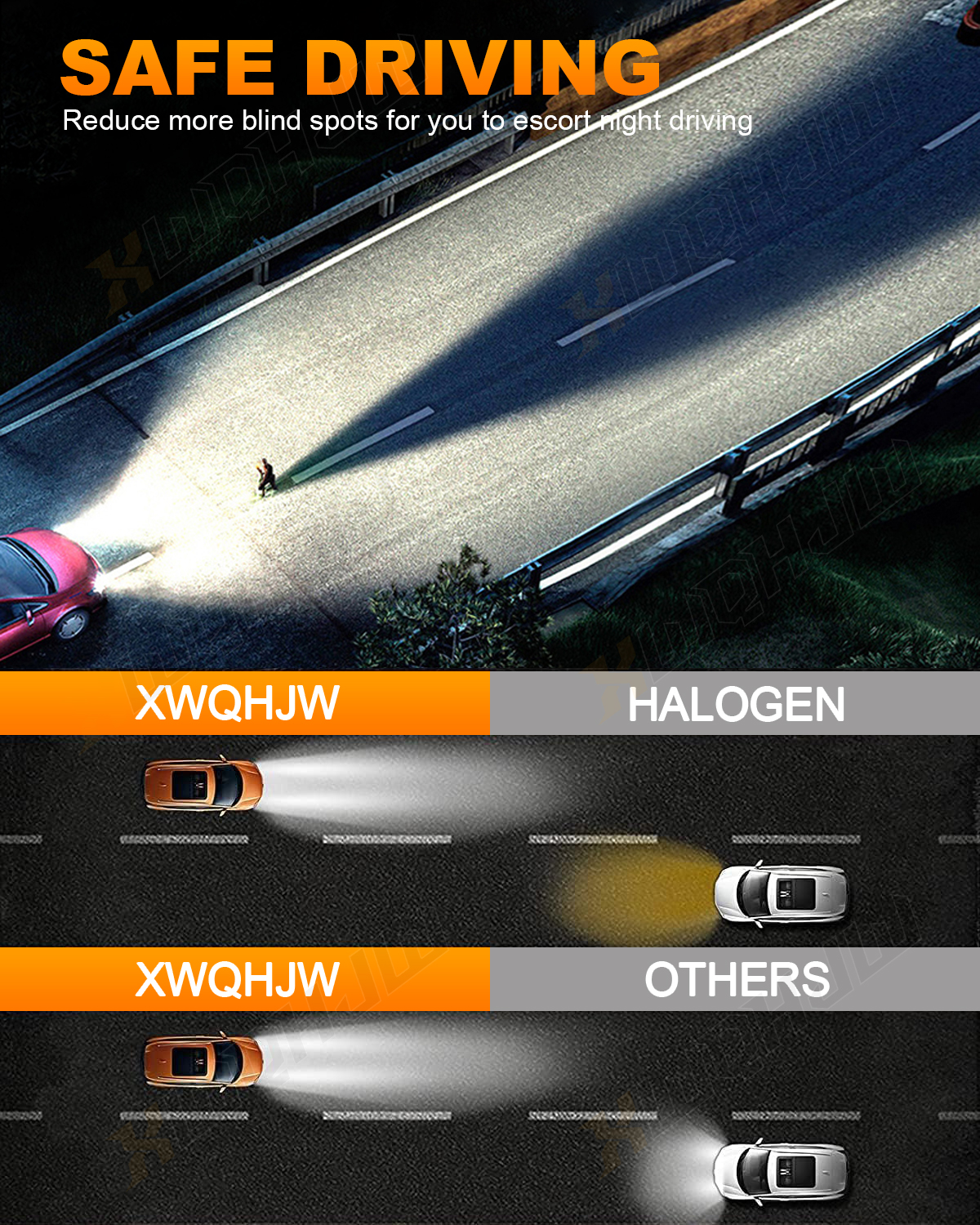 Equipped with high luminous efficacy COB chips. 300% Brighter than standard halogen. Our LED light bulbs ensure the clarity of vision allows drivers easy to react to sudden movement. Effectively illuminate wildlife, falling rocks and obstacles. Huge improvement for road safety.