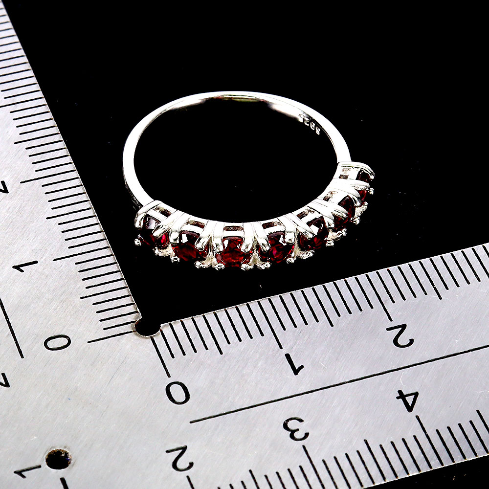 925 Sterling Silver Ring Round Rhodolite Garnet Natural Gemstone Jewelry Size 8