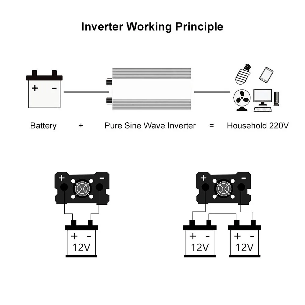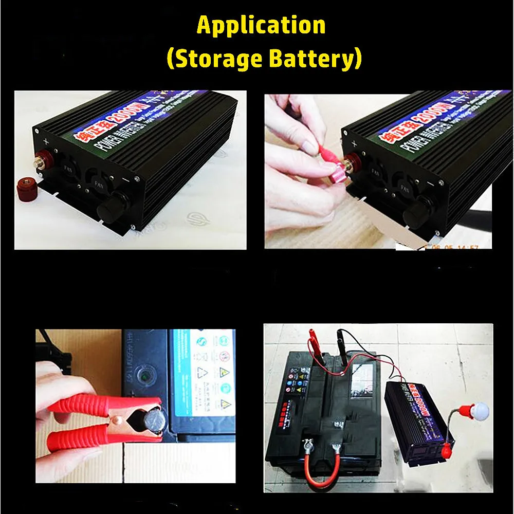 2000W Model Parameters: Surge Output Power: 2000W Continuous Output Power: 1000W Input Voltage: 12V/24V/48V/60V Output Voltage: 220V Frequency: 50Hz/60Hz Display: Double