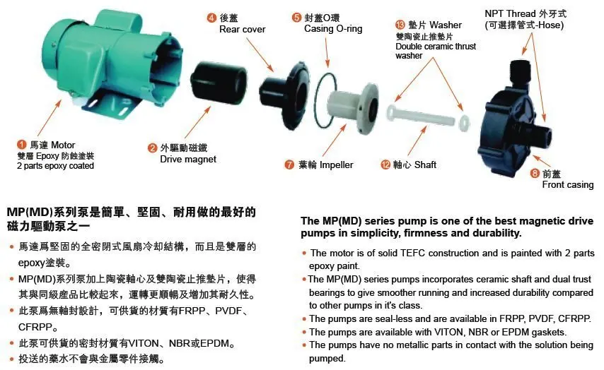 Pump can deliver liquid excluding iron tramping and hard solid particle whose viscosity is not more than 30cst, such as acid, alkali, strong oxidizer or organic solvent