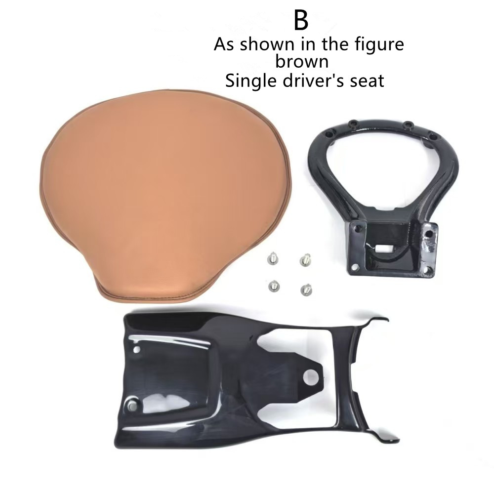 B: Brown leather solo saddle seat + stand + solo saddle seat closed (Compatibility Scout Bobber)