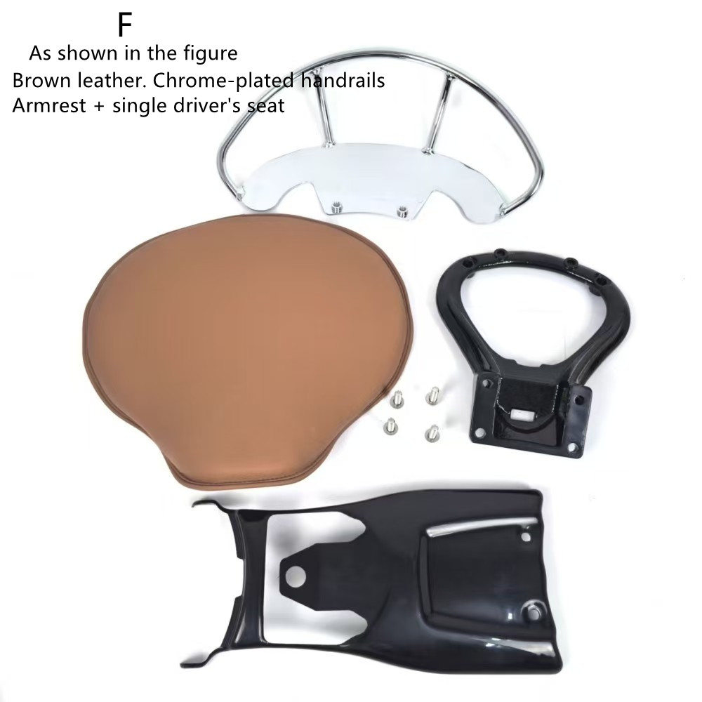 F: Brown leather solo saddle seat + stand + solo saddle seat closure + chrome-plated armrests (Compatibility Scout Bobber)