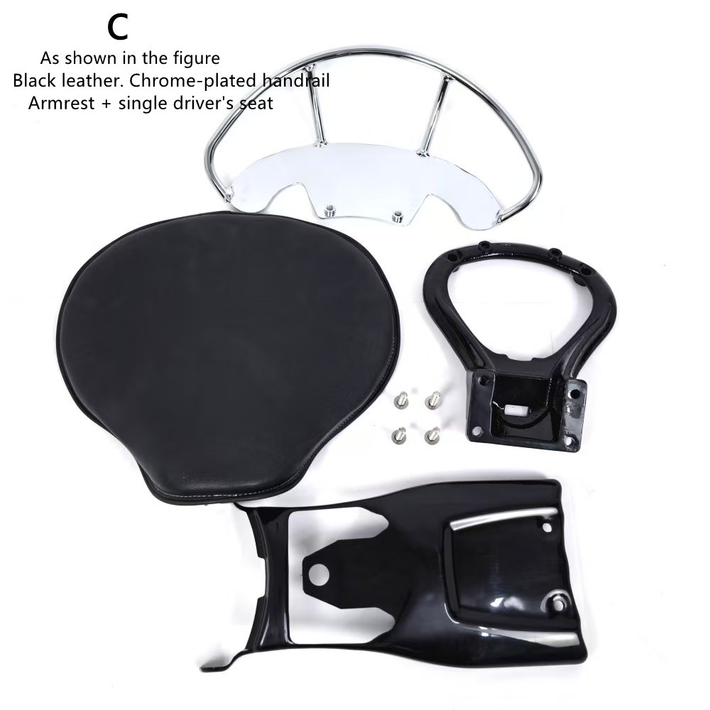 C: Black leather solo saddle seat + stand + solo saddle seat closure + chrome-plated armrests (Compatibility Scout Bobber)
