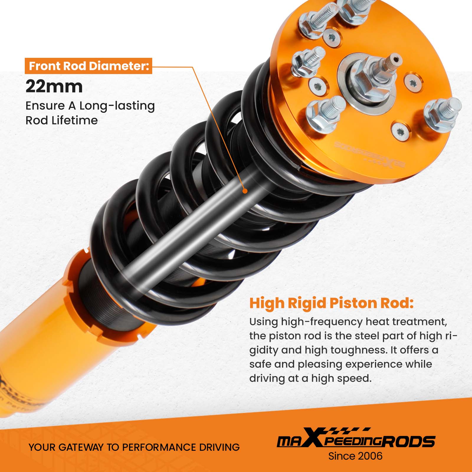- Pillow ball top mount - It improves the steering feel and response.