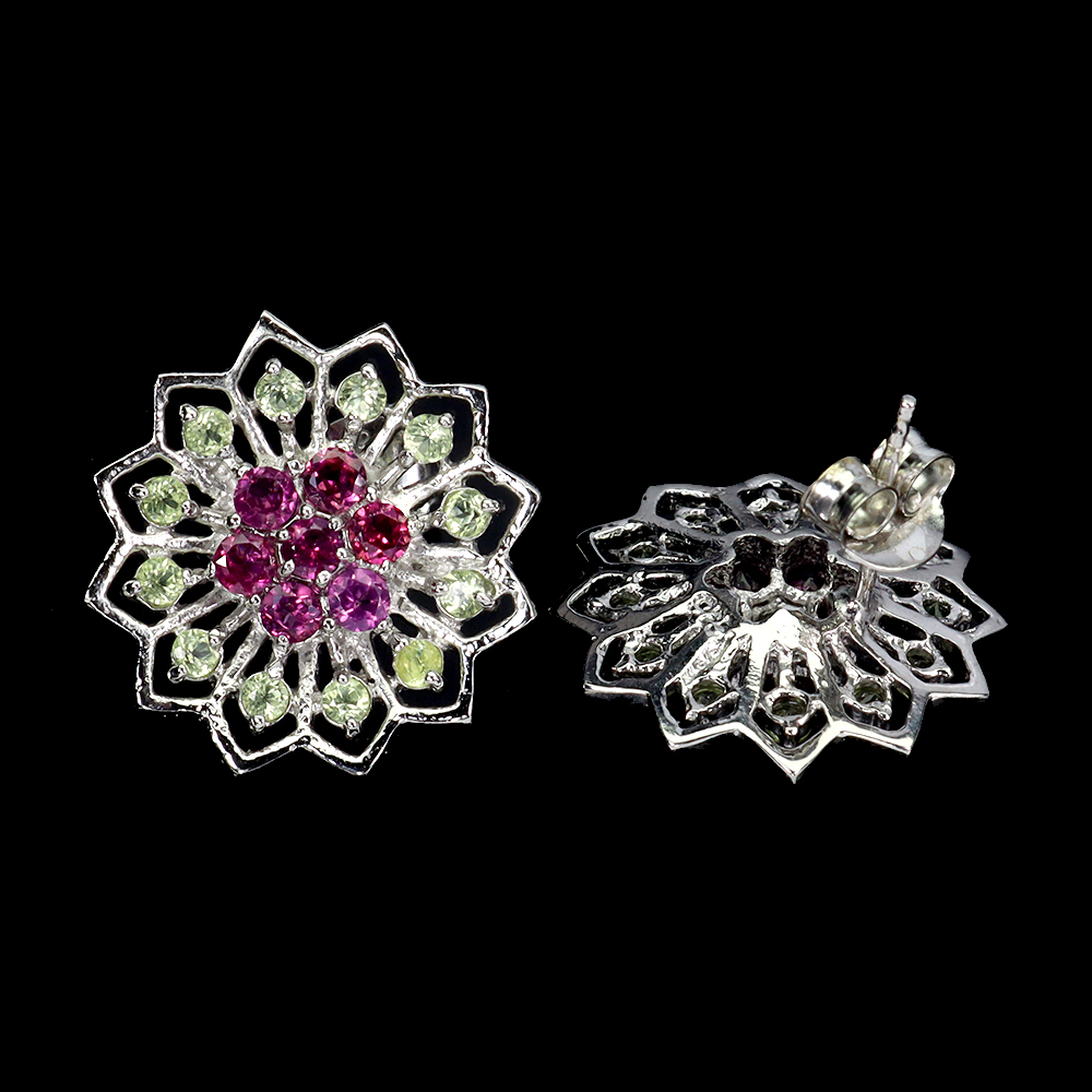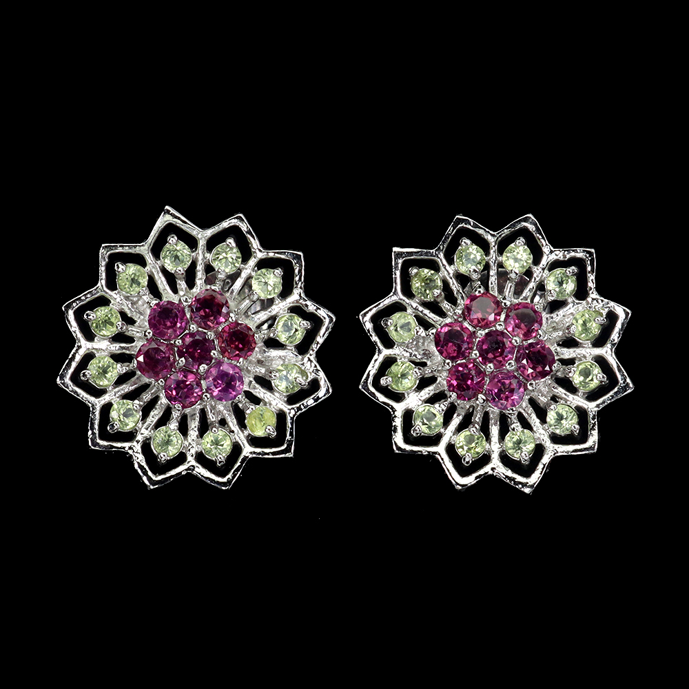 925 Sterling Silberohrringe rund Rhodolith Granat Peridot Edelsteinschmuck