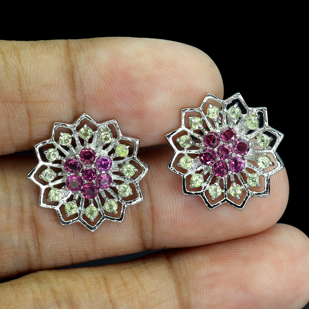 925 Sterling Silber Ohrringe Rund Rhodolit Granat Peridot Edelstein Schmuck