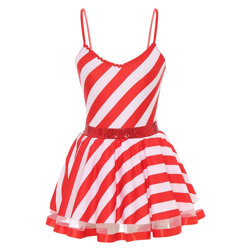 Decorated with stripes print and shiny sequins at waist, this Christmas candy cane costume makes beautiful and attractive.
