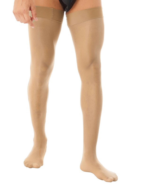 Mens Thigh High Stockings Stay Up Glossy Semi Sheer Hold Ups Pantyhose Lingerie