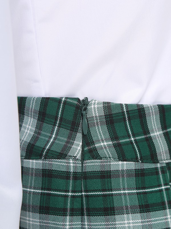 Women Schoolgirls Role Play Costume Fancy Dress Ball Outfit Zipper Plaid Pleated Mini Skirt with Necktie.