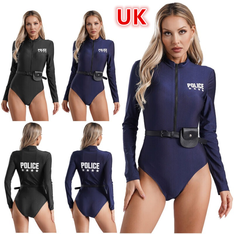 Policewomen outfit includes romper, faux leather belt and purse, 3-piece a set.