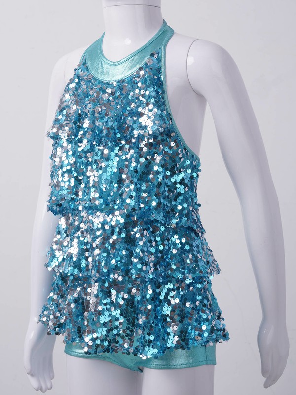 Dance costume is made of polyester and sequins material, hand wash.
