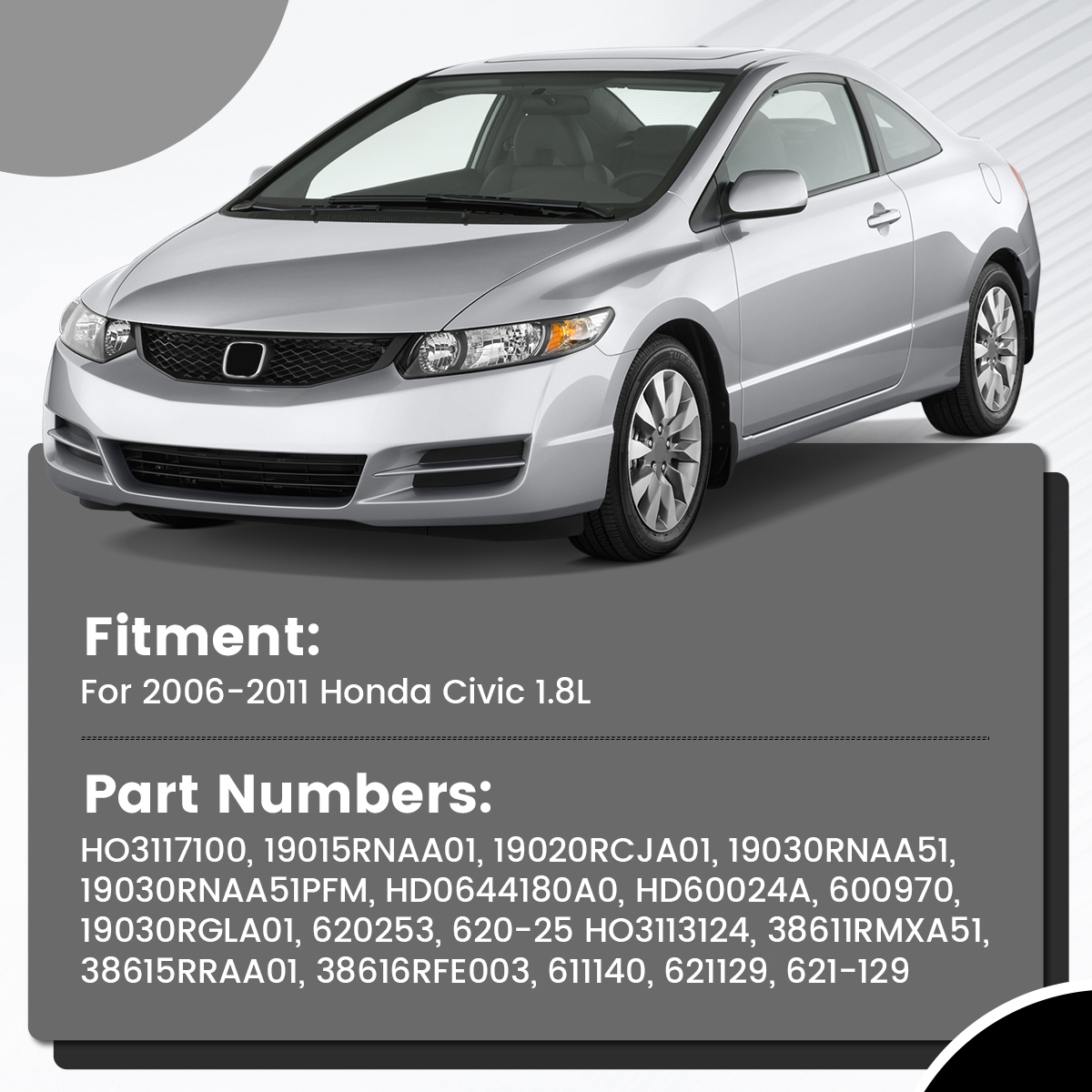 Part Numbers: HO3117100, 19015RNAA01, 19020RCJA01, 19030RNAA51, 19030RNAA51PFM, HD0644180A0, HD60024A, 600970, 19030RGLA01, 620253, 620-253
