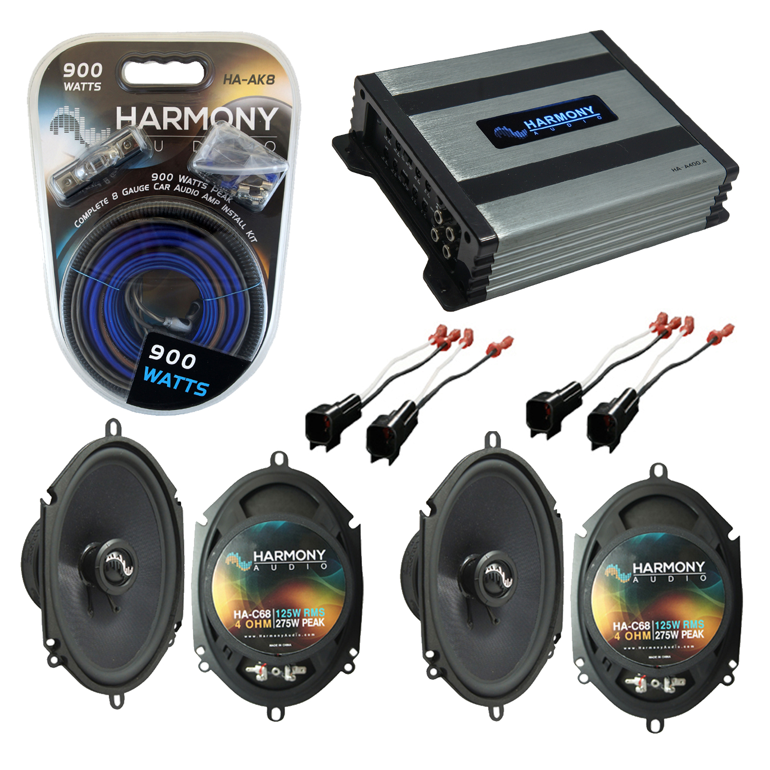 Fits Ford Mustang 2005-2009 Factory Speakers Upgrade Harmony (2) C68 & HA-A400.4