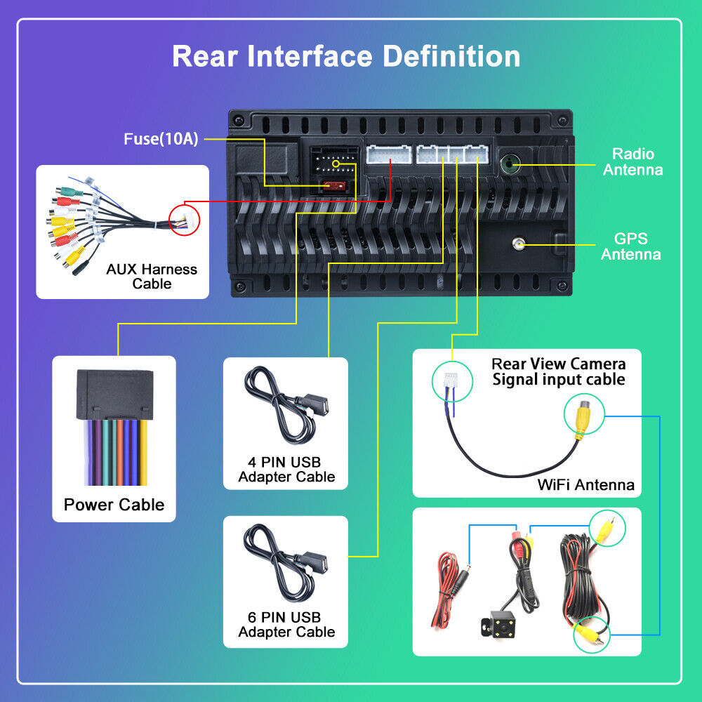 8.Rear view function:Support Rear view camera input, backing car more safer and convenient