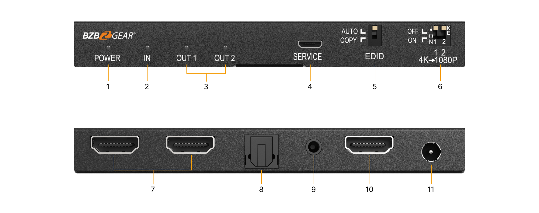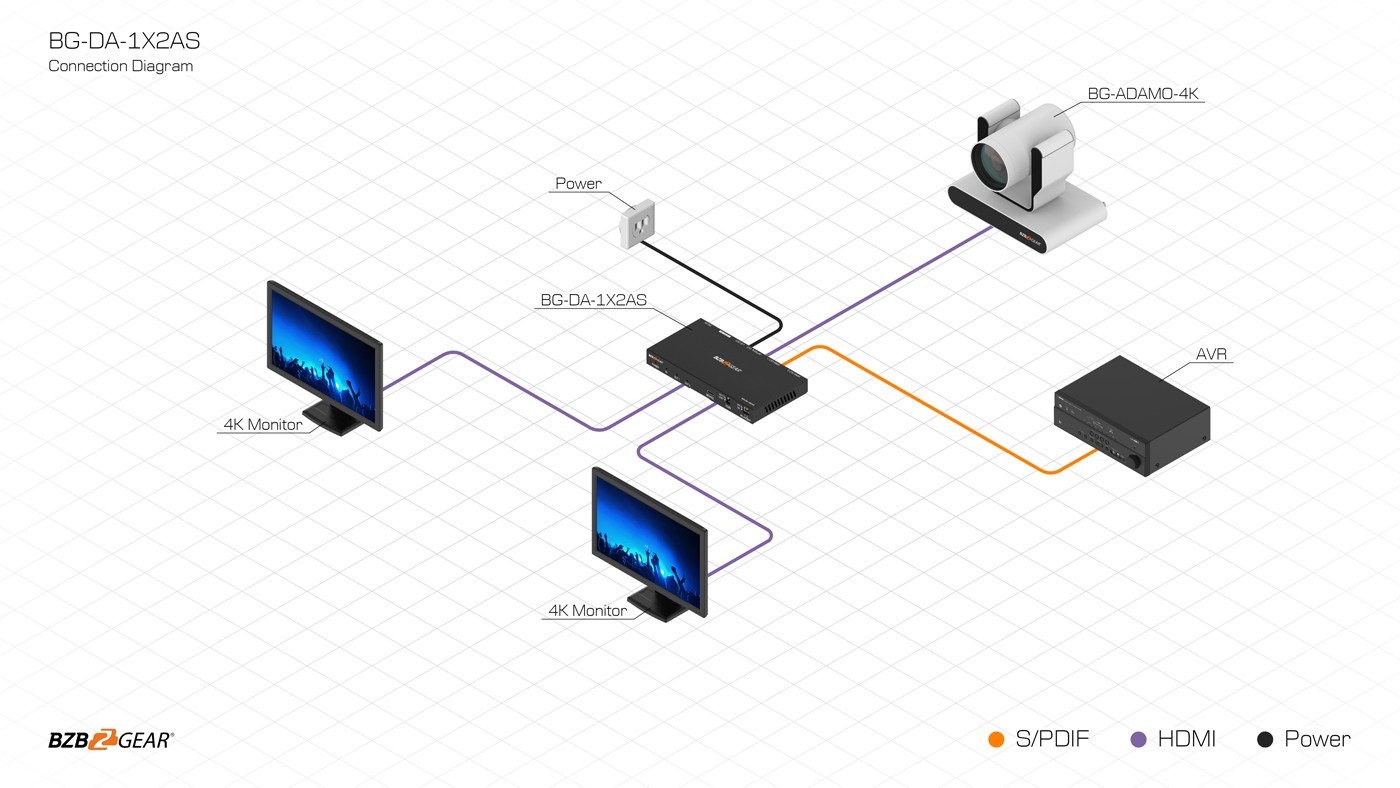 L'une des principales caractéristiques du BG-DA-1X2AS est son disqueur de 4K sélectionnable de 4K à 1080p pour chaque sortie, ce qui permet la compatibilité avec les écrans hérités. Cette fonctionnalité en fait un choix polyvalent pour les installations qui nécessitent des solutions vidéo flexibles et adaptables.