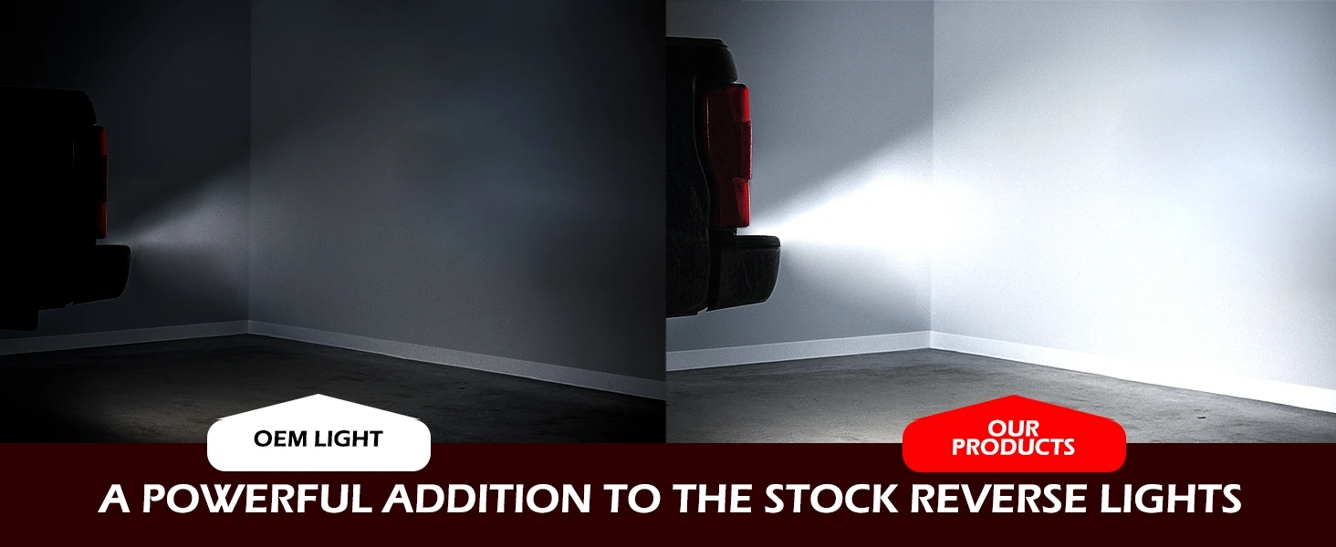 1. Brighter Backup. Factory reverse bulbs just don't provide enough light output to back up at night confidently. By pairing our patented TIR optics with high-powered LEDs, the one included in this kit provide an additional reverse light that's several times brighter than stock bulbs alone. And with a recent upgrade, the LED Pod now delivers 68% more light output, providing even more output when backing up at night! Plus, they automatically come on when the vehicle is put in reverse!
