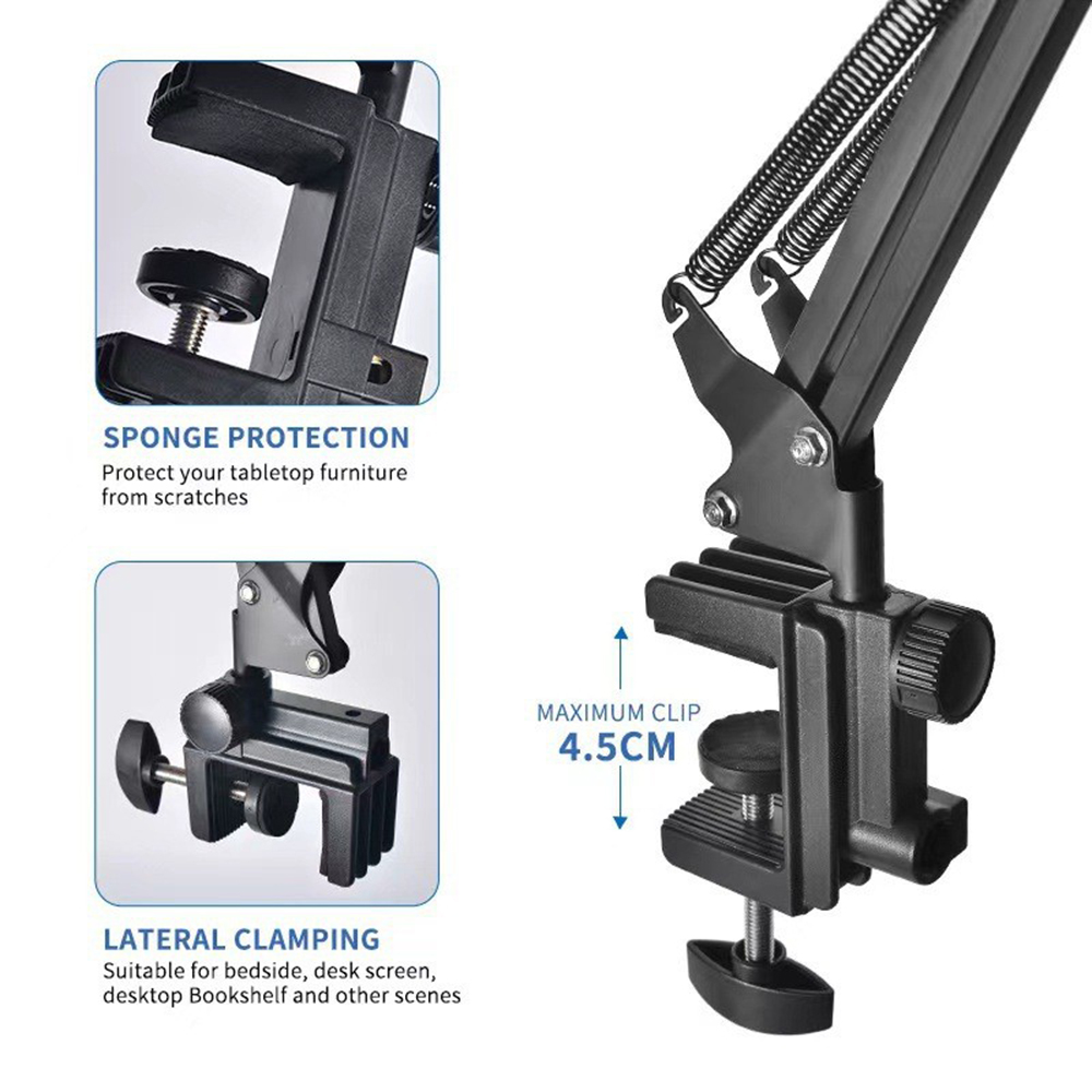 Easy to install and remove: The phone clip holder has a powerful clip to keep your phone safe. Easy to install on furniture such as tables and bookshelves. The soft rubber pad on the base clip will not cause any damage to the wooden or glass office desk, making it perfect for using your phone to watch movies and enjoy music in bedrooms, bathrooms, kitchens, gyms, and offices.
