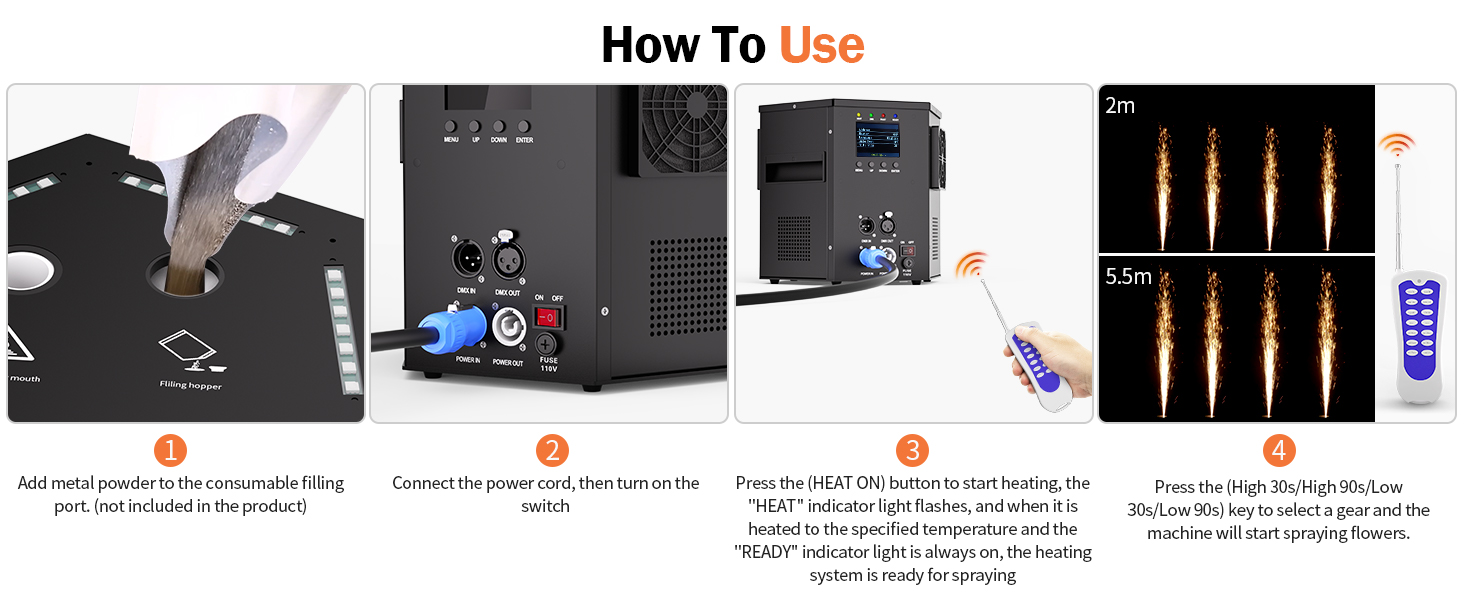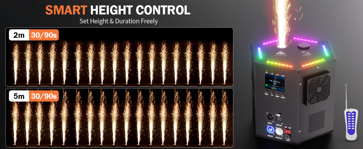 Impressive Performance: Electromagnetic heating delivers dense, vibrant sparks reaching heights up to 5.5 meters (18 feet) for a truly captivating spectacle.